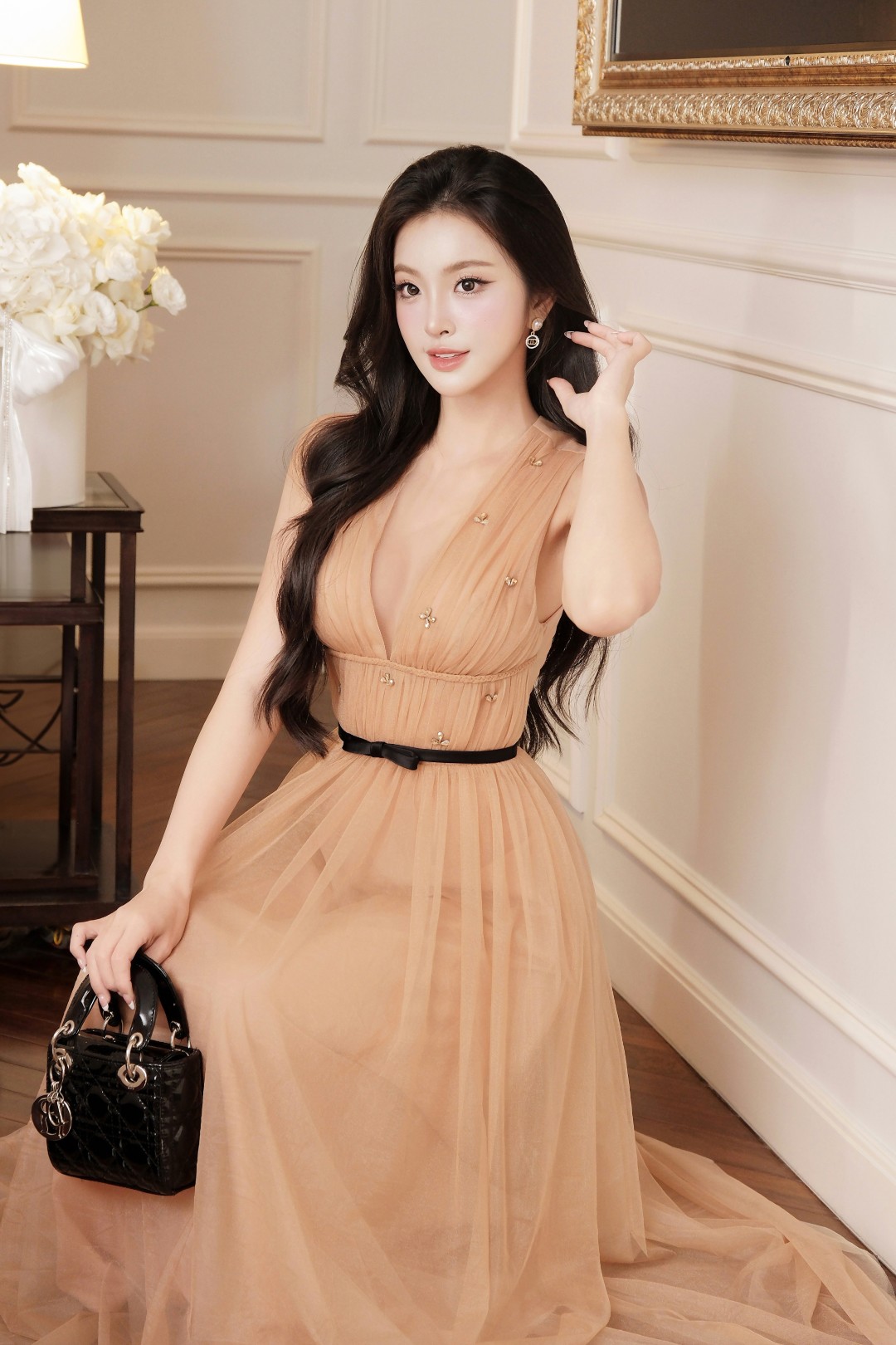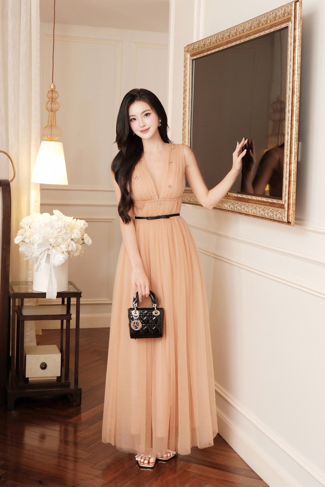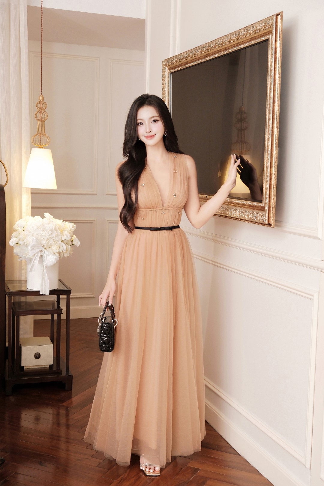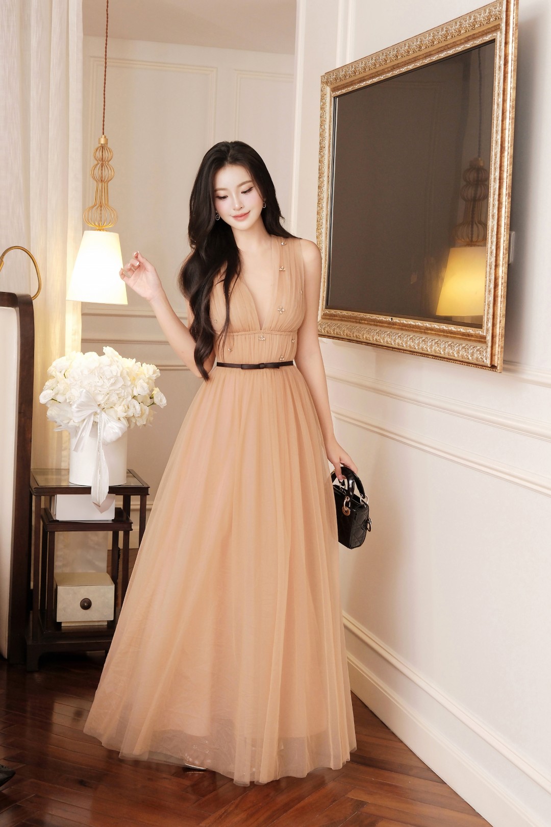 Tone nâu sang trọng mang hơi thở cổ điển pha hiện đại, thích hợp cho nàng diện trong event, tiệc tối, dinner lãng mạn hay tiệc cưới, nơi cần sự quý phái và spotlight nổi bật.