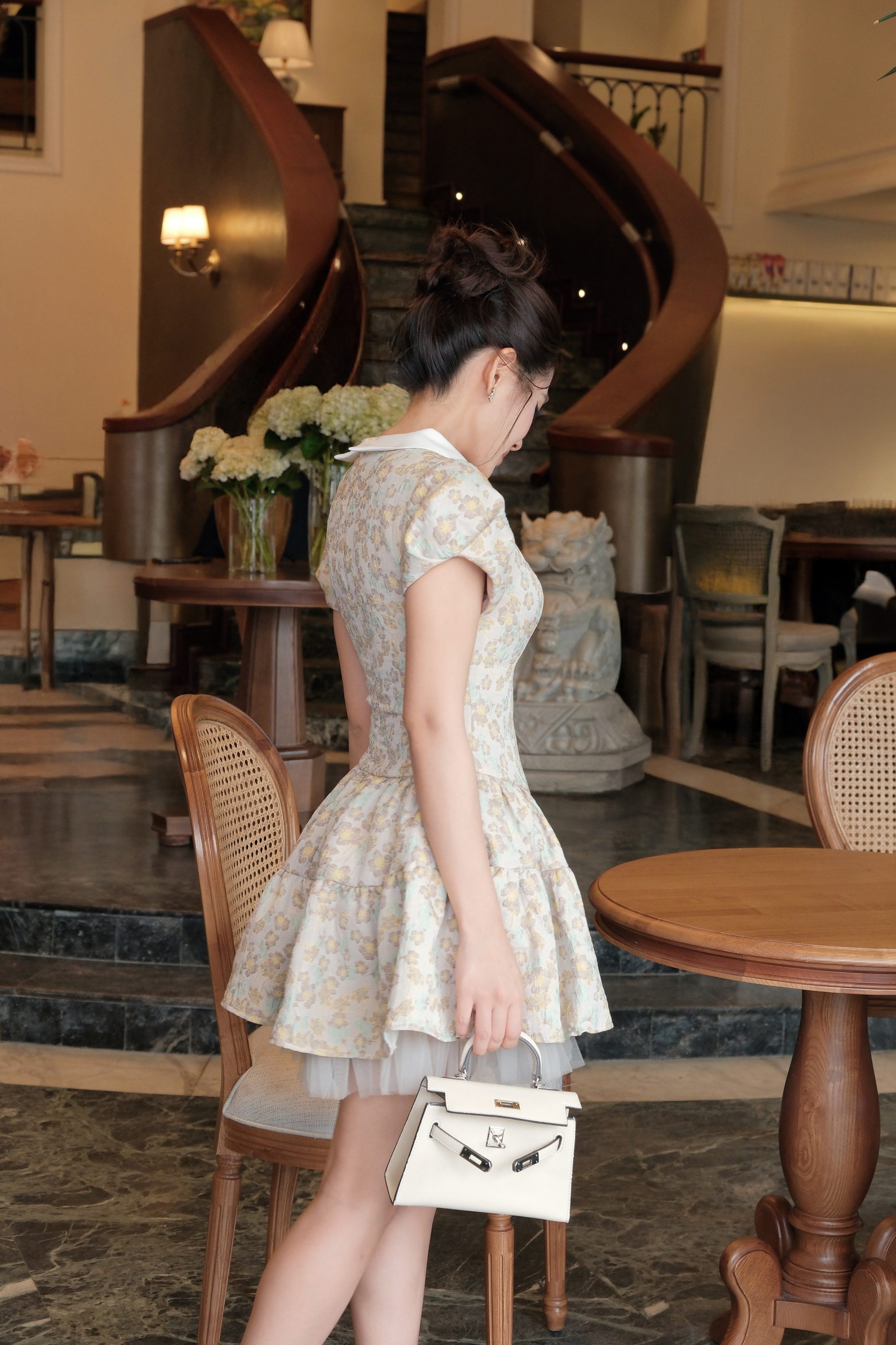 Đánh giá Đầm Ngắn KD560 Gấm Hoa – Váy Xòe Cổ Sơ Mi Thanh Lịch Vintage | Khiết