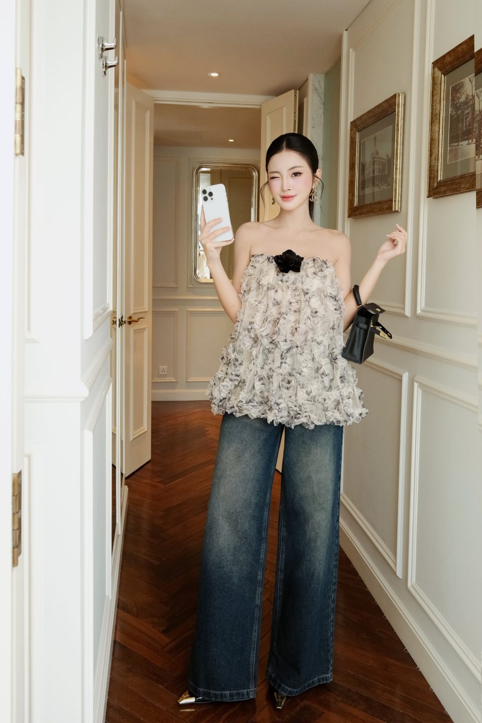 ✔️ Chất liệu: Áo tơ cao cấp mềm mại, nhẹ và thoáng mát; quần jean cotton trắng chất liệu dày dặn, co giãn nhẹ, lên form chuẩn.
