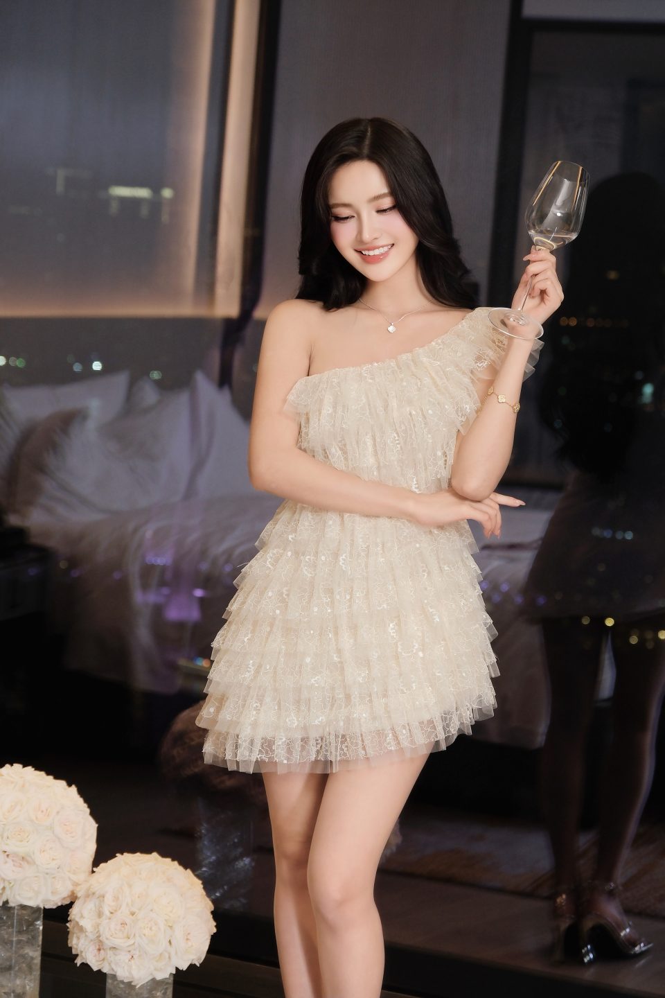 ✔️ Đầm ngắn xòe chia tầng, tơ óng nhẹ nhàng, bay bổng