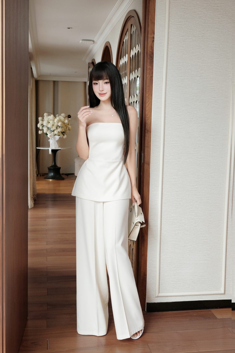 ✔️ Thiết kế áo quây dáng dài phối quần ống suông cạp cao