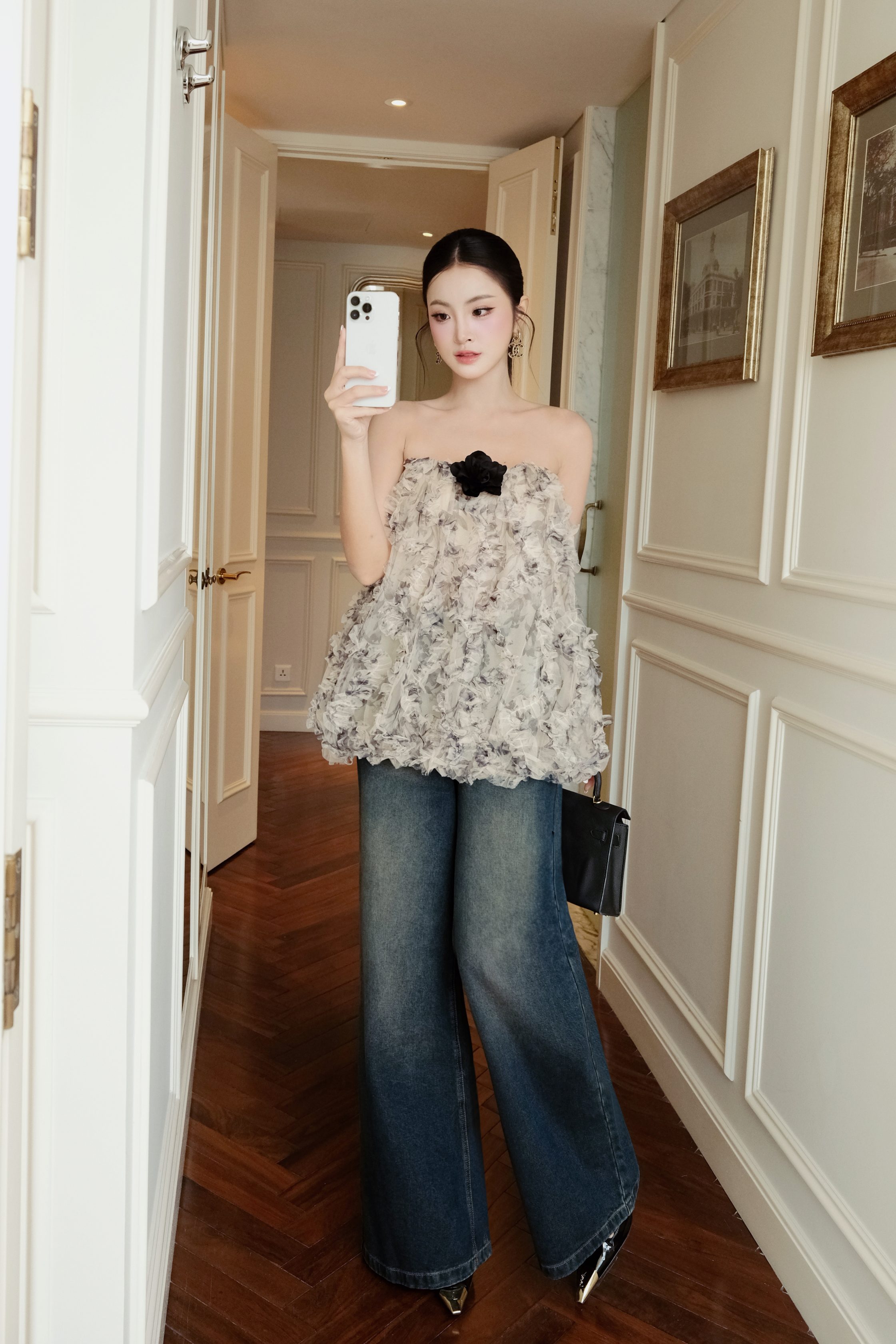Thiết kế form babydoll cúp ngực mang đến vẻ ngoài gợi cảm nhưng vẫn giữ sự dễ thương. Áo được phủ bèo 3D toàn thân, tạo độ bồng nhẹ tự nhiên, tôn lên sự mềm mại và nữ tính.