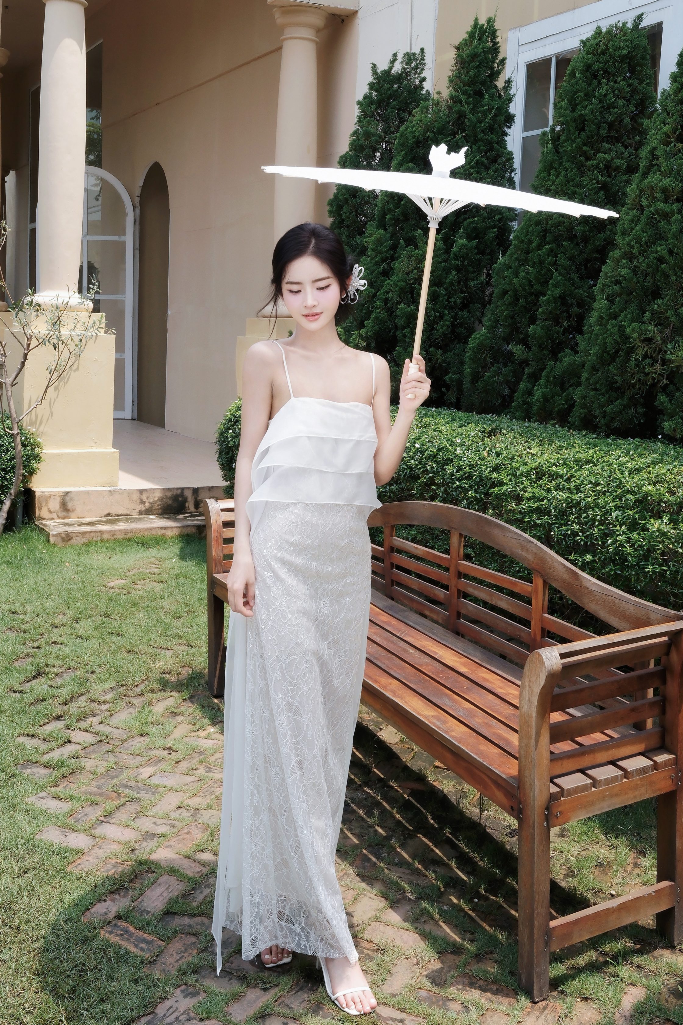 Đánh giá KD211 – Đầm Dài 2 Dây Phối Tầng Ren Kim Sa | Khiết