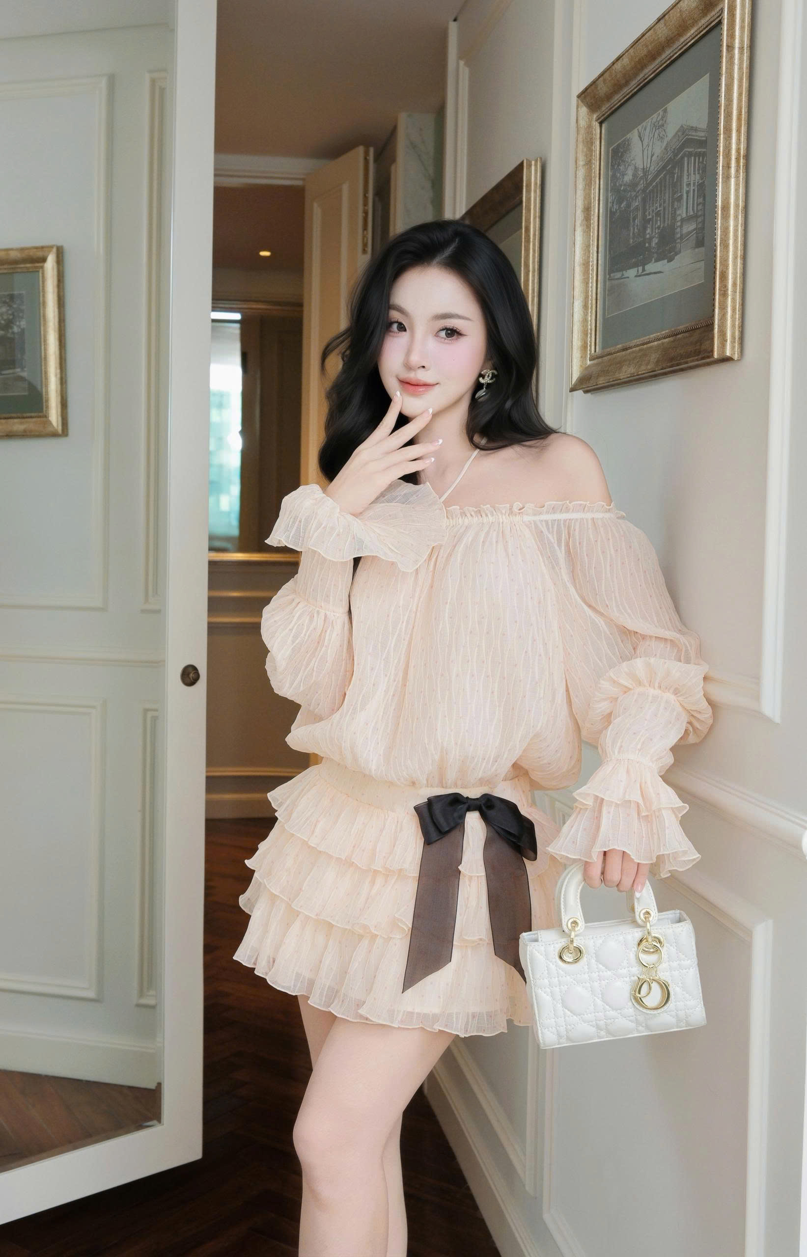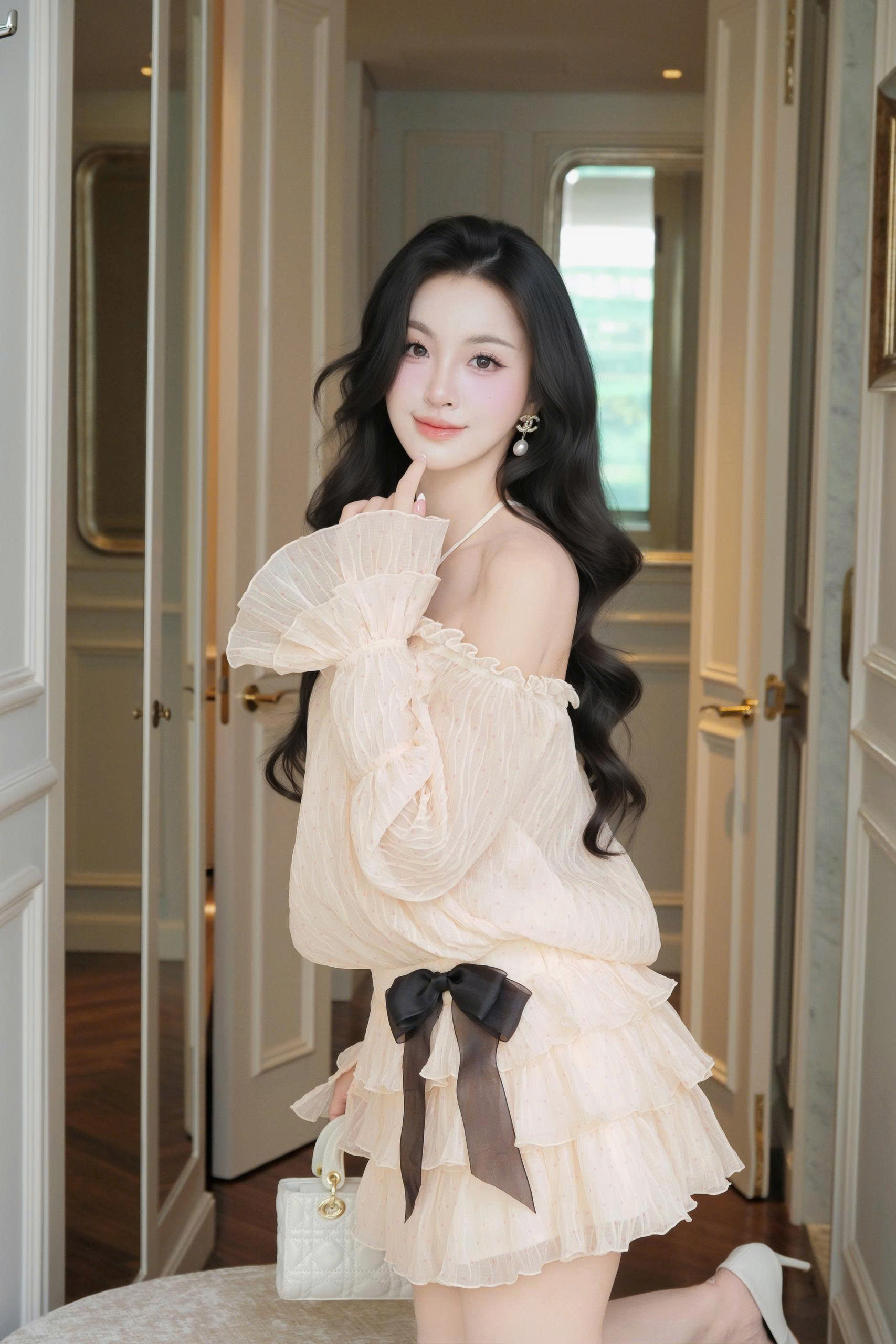 KD217A – Đầm Ngắn Tơ Dập Chấm Bi Trễ Vai | Khiết là thiết kế mộng mơ, duyên dáng và cực kỳ tôn dáng cho nàng yêu sự nhẹ nhàng, điệu đà nhưng vẫn nổi bật.