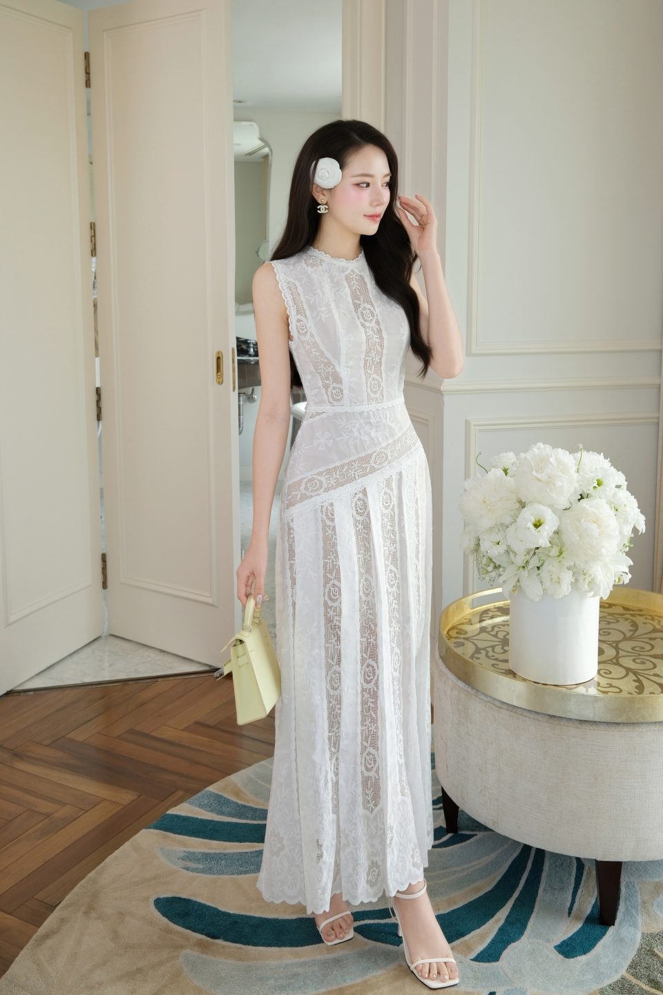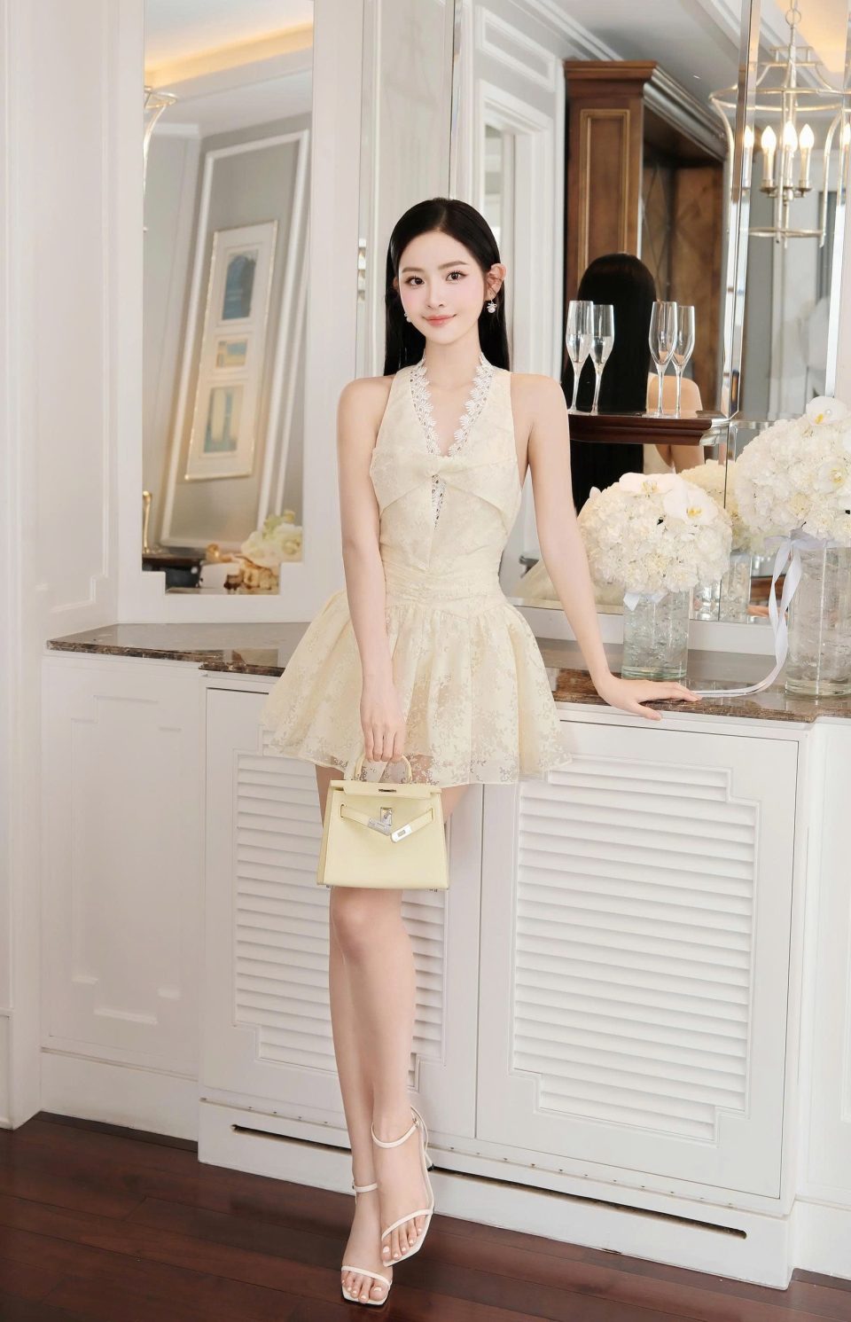 Lớp lót lưới dẻo mềm mại bên trong giúp tăng sự kín đáo và dễ chịu khi mặc. Màu kem trung tính, trang nhã, dễ phối cùng phụ kiện ánh kim hoặc tone pastel cho những buổi tiệc tối, sự kiện sang trọng, hẹn hò hoặc chụp ảnh.