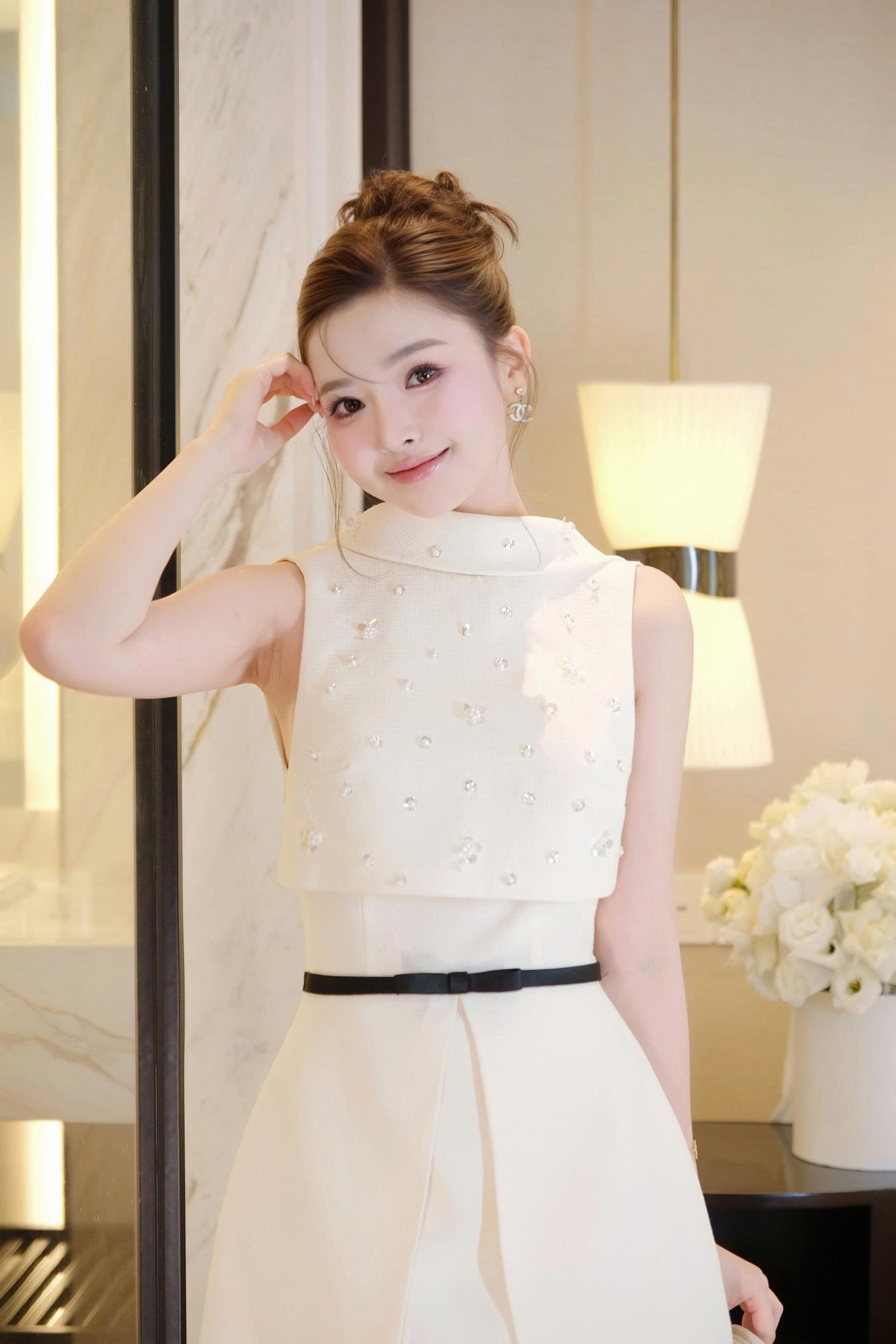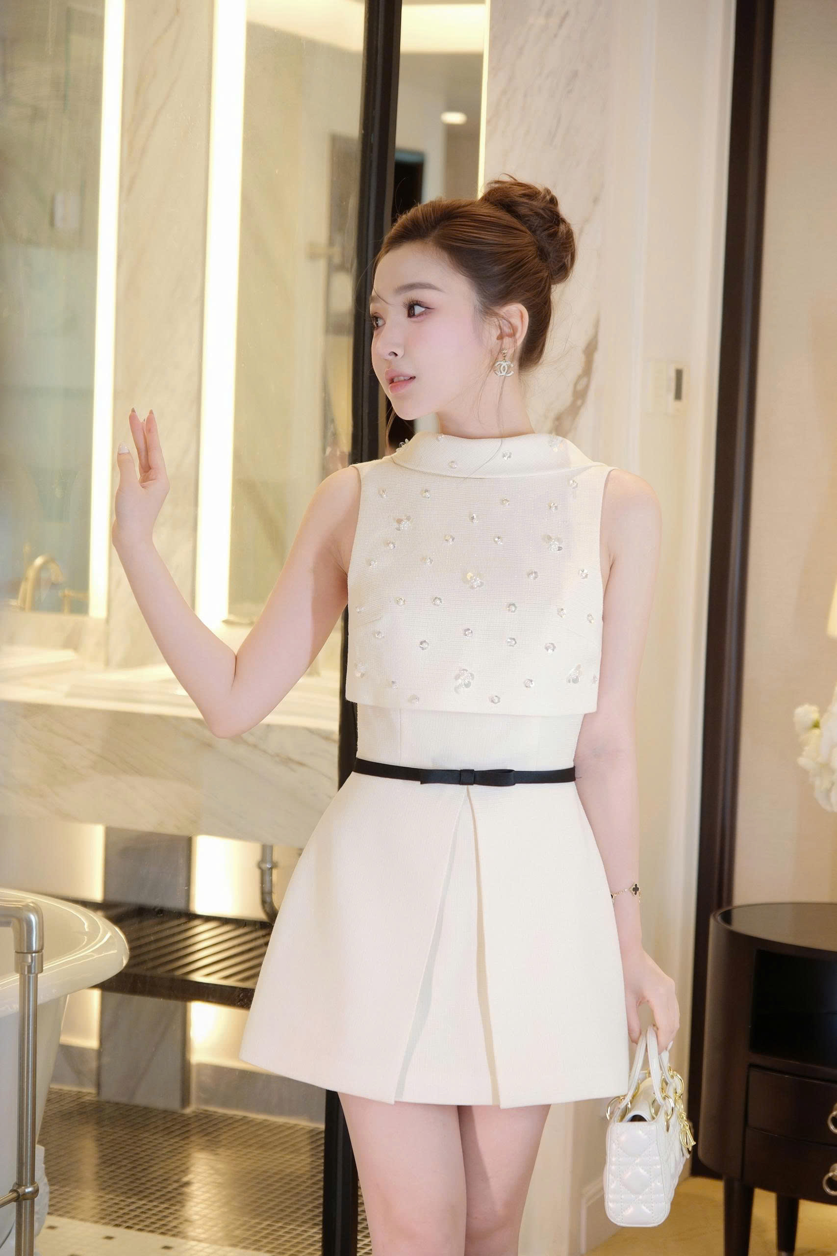 Gam màu trắng kem ngọt ngào, sang trọng và quý phái, dễ dàng kết hợp cùng nhiều phụ kiện để tạo nên phong cách tiệc tùng thời thượng.