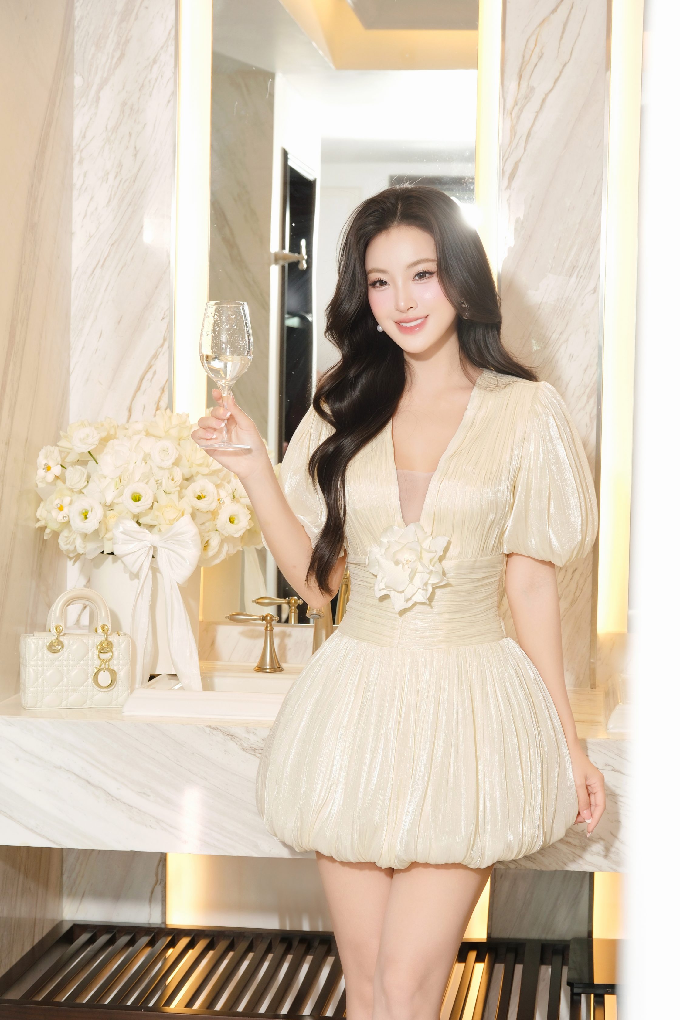 Dáng mini dress trẻ trung với chân váy xoè bí phồng tròn tự nhiên, tạo hiệu ứng bồng bềnh, nữ tính.