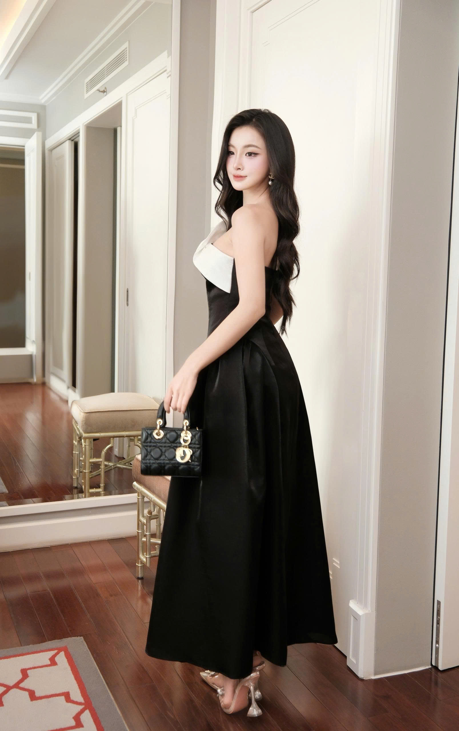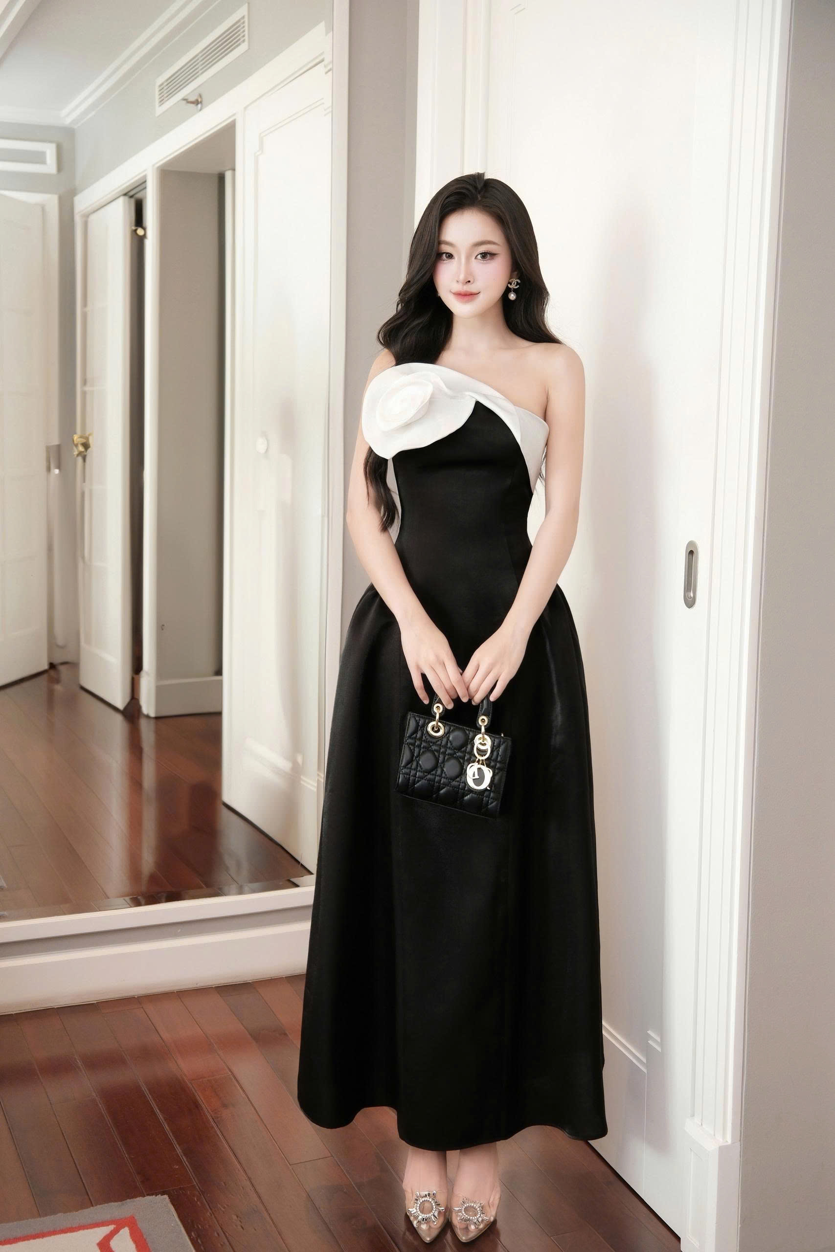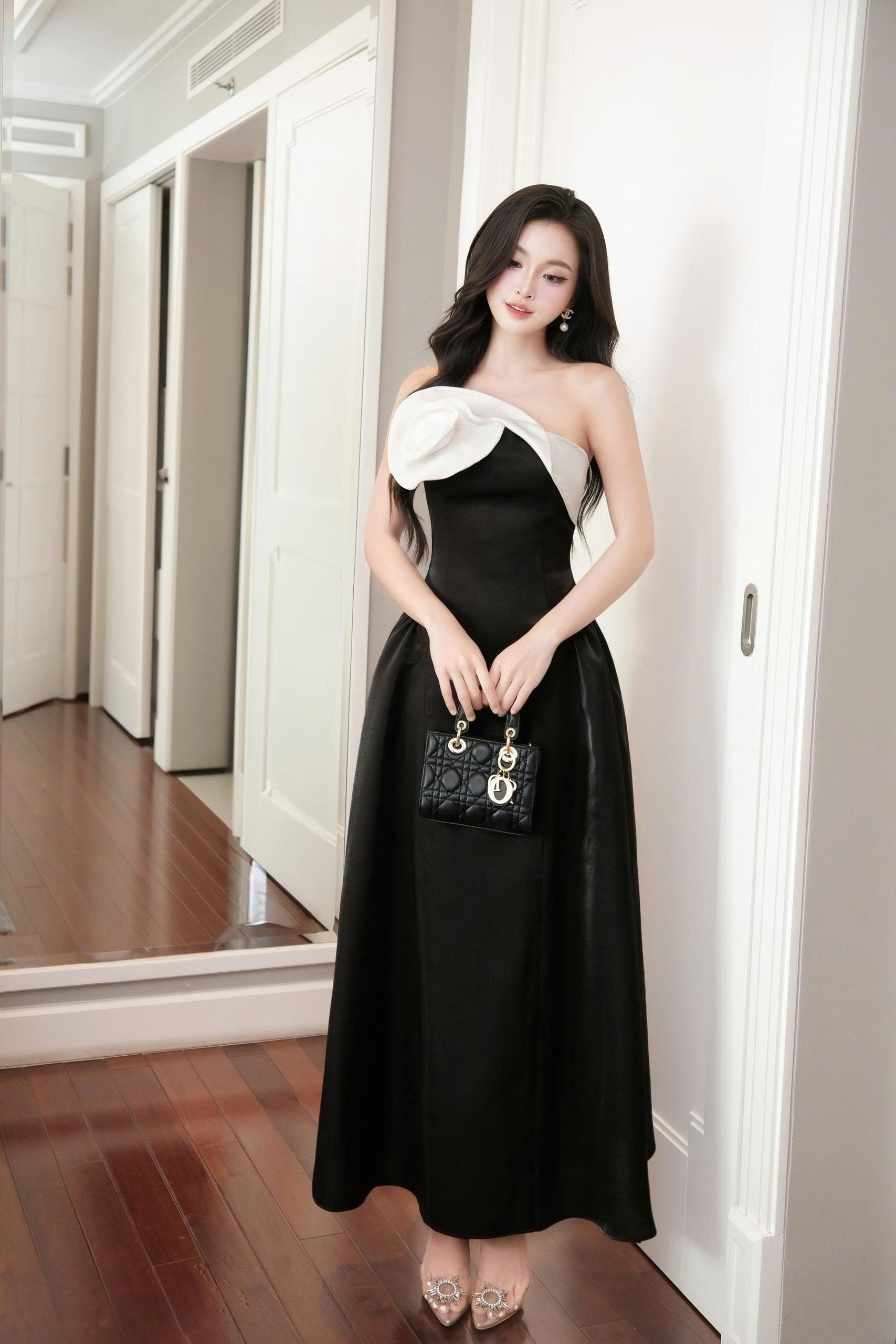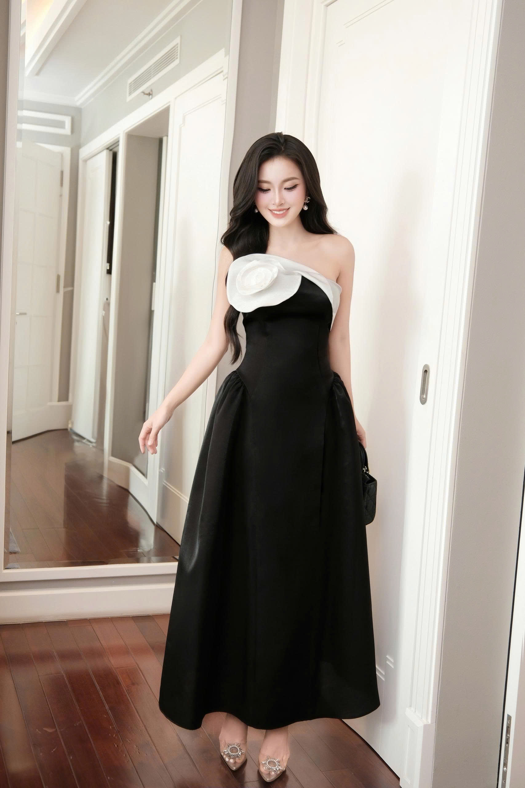 Với tông màu đen chủ đạo, chiếc váy không chỉ mang vẻ đẹp cổ điển, sang trọng mà còn thể hiện quyền lực và sự tự tin, rất thích hợp để diện trong các bữa tiệc, event đẳng cấp. Chiều dài váy 135cm chuẩn form dạ tiệc, phù hợp với nhiều dáng người. Đây chắc chắn là lựa chọn hoàn hảo giúp bạn tỏa sáng và thu hút mọi ánh nhìn.