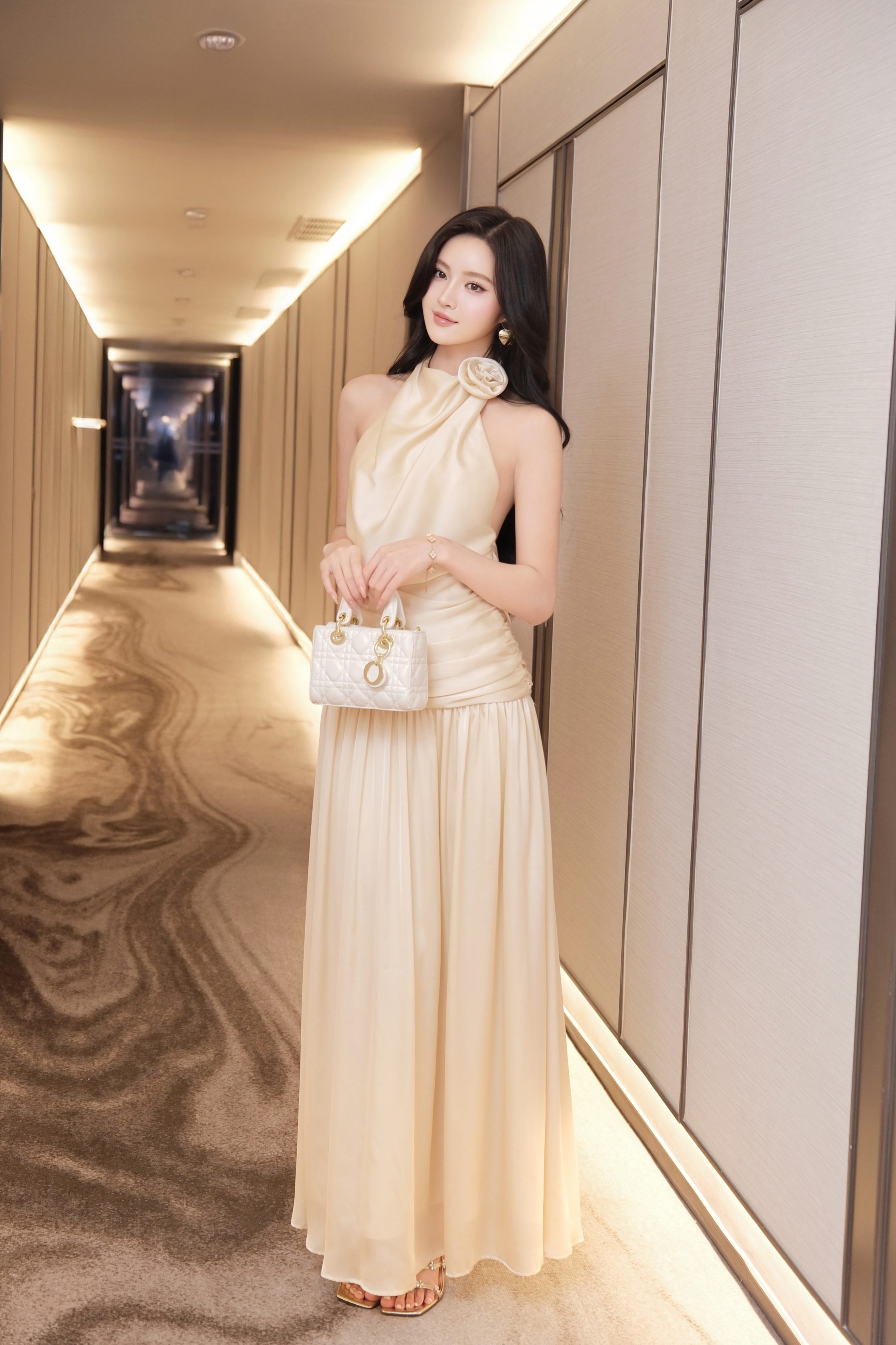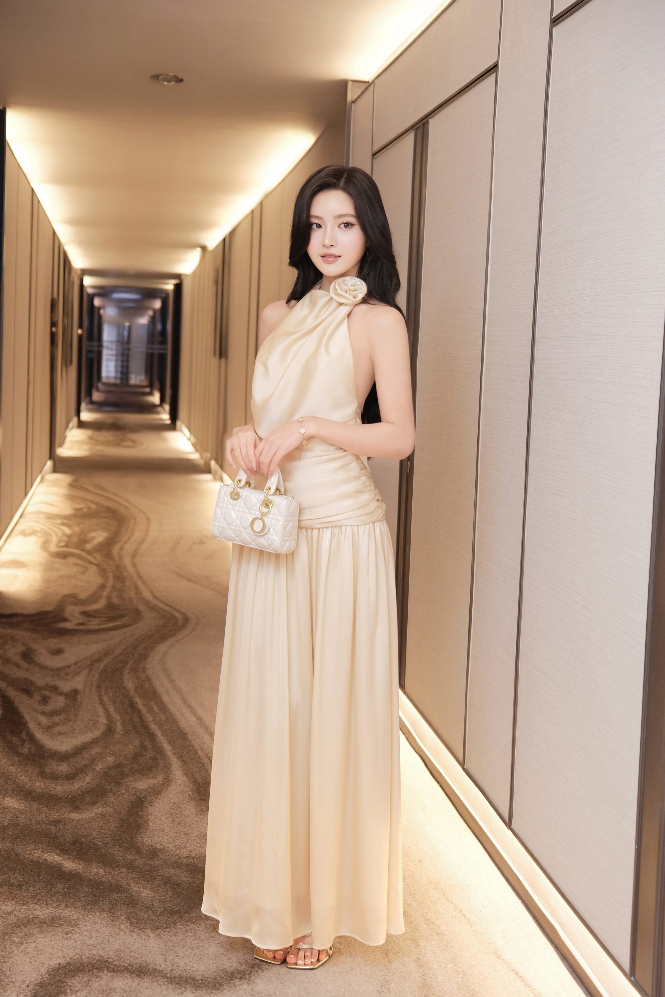 Điểm nhấn ấn tượng đến từ phần lưng hở nhẹ cùng dây thắt nơ bản mảnh, vừa giúp giữ dáng, vừa tạo nên vẻ duyên dáng ngọt ngào. Bên trong là lớp lót lụa mềm mát, đảm bảo sự thoải mái khi di chuyển.