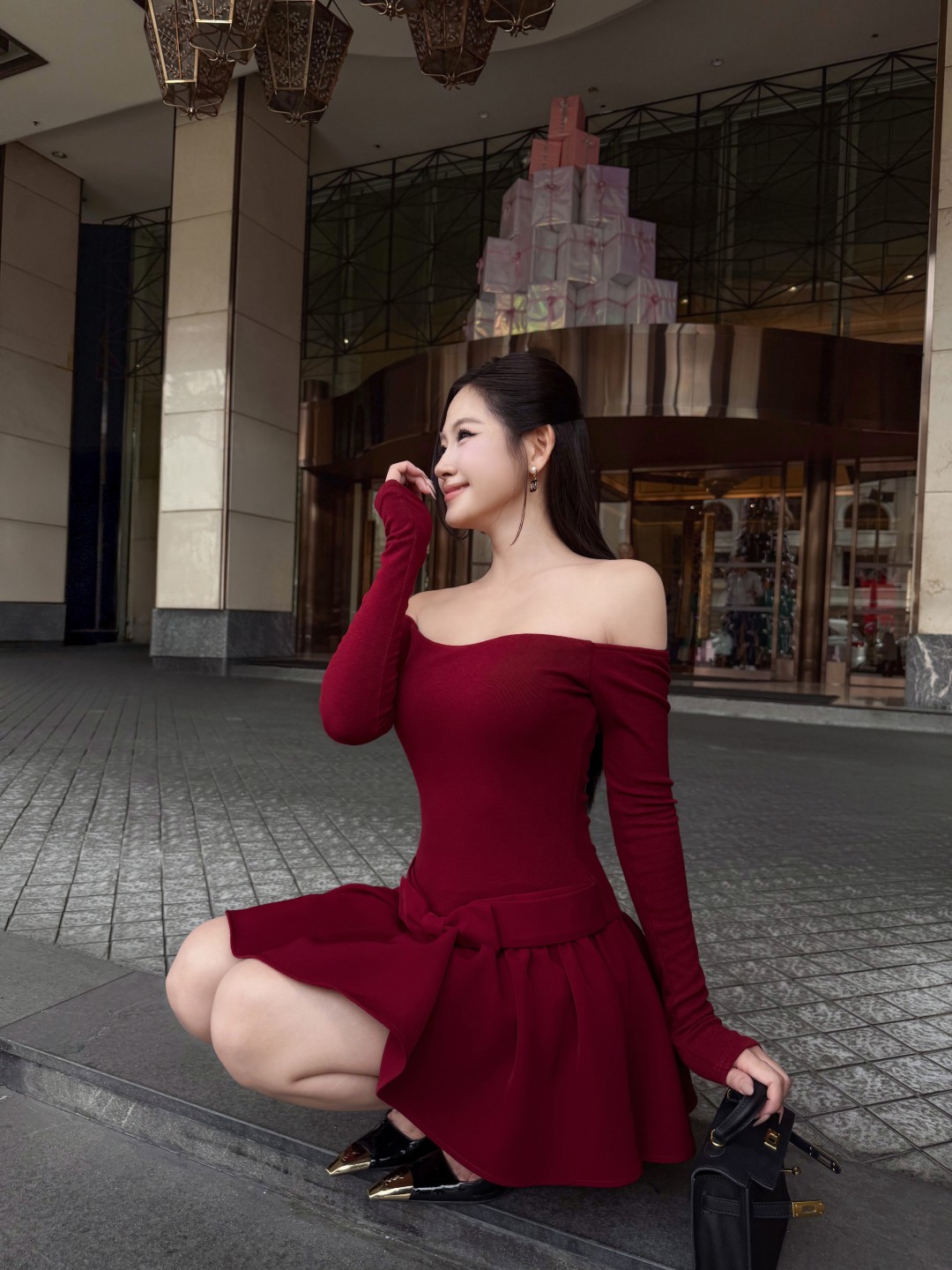 Mini dress trễ vai đỏ đô phù hợp dịp nào?