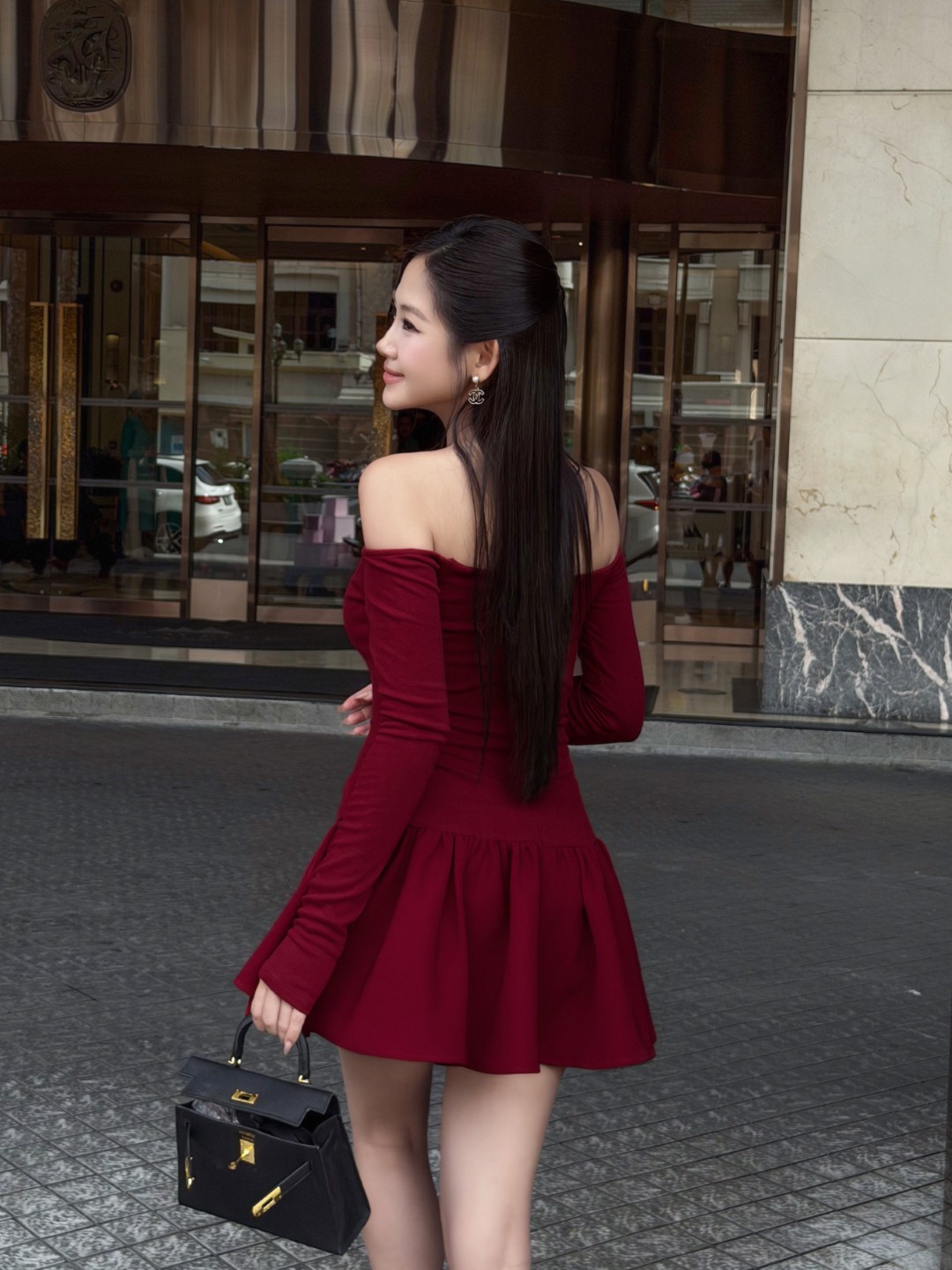 Mini dress trễ vai đỏ đô là thiết kế váy ngắn tay dài mang phong cách classic chic, nổi bật với form trễ vai mềm mại kết hợp chất liệu nhung cotton co giãn và vải gold tằm cao cấp. Mẫu váy hướng đến vẻ đẹp nữ tính, quyến rũ nhưng vẫn giữ nét sang trọng, tinh tế.