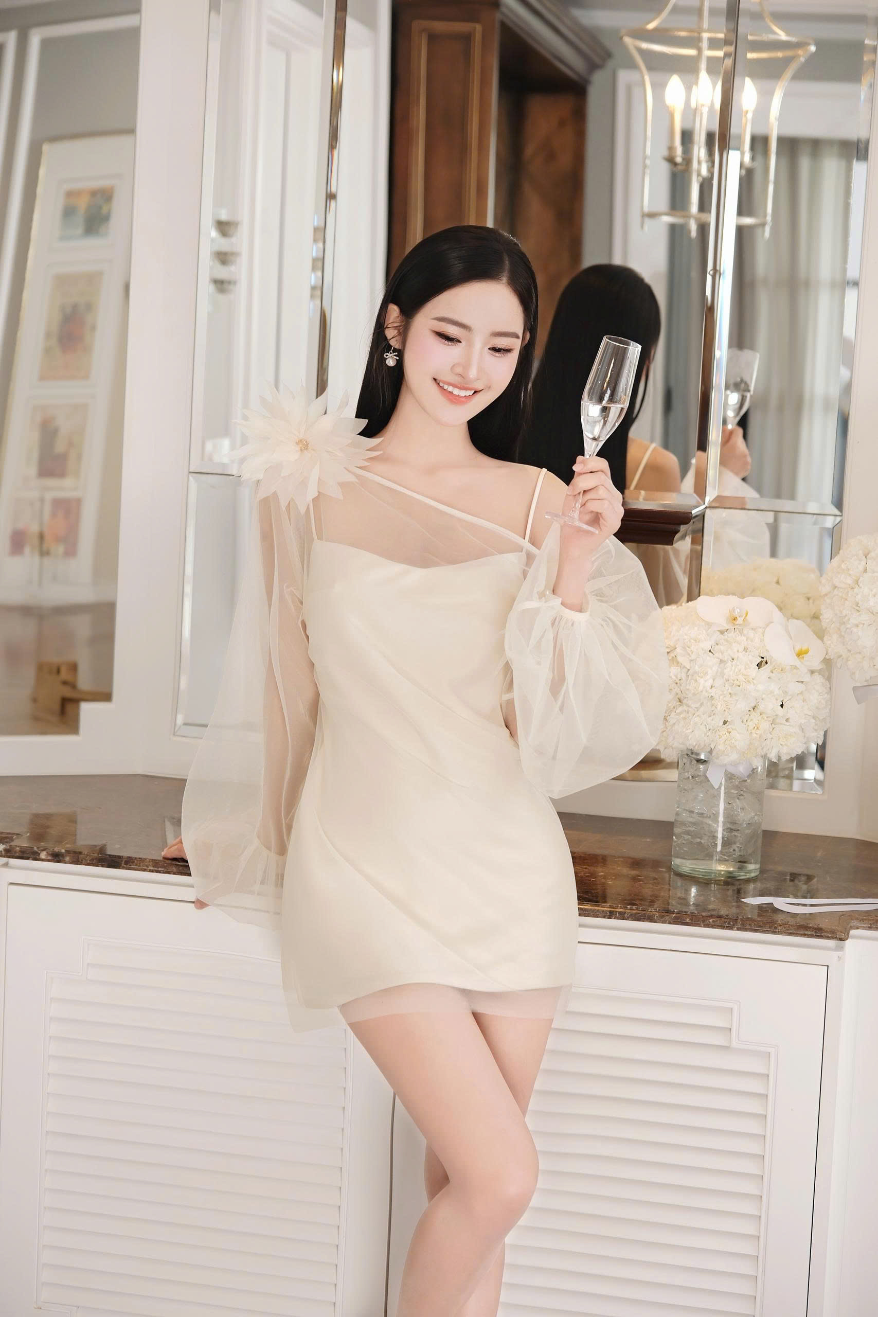 KS283 là set đầm ngắn cực kỳ tinh tế và sang trọng từ thương hiệu Khiết, kết hợp hoàn hảo giữa sự quyến rũ của lụa và vẻ bồng bềnh bay bổng của lưới cao cấp.