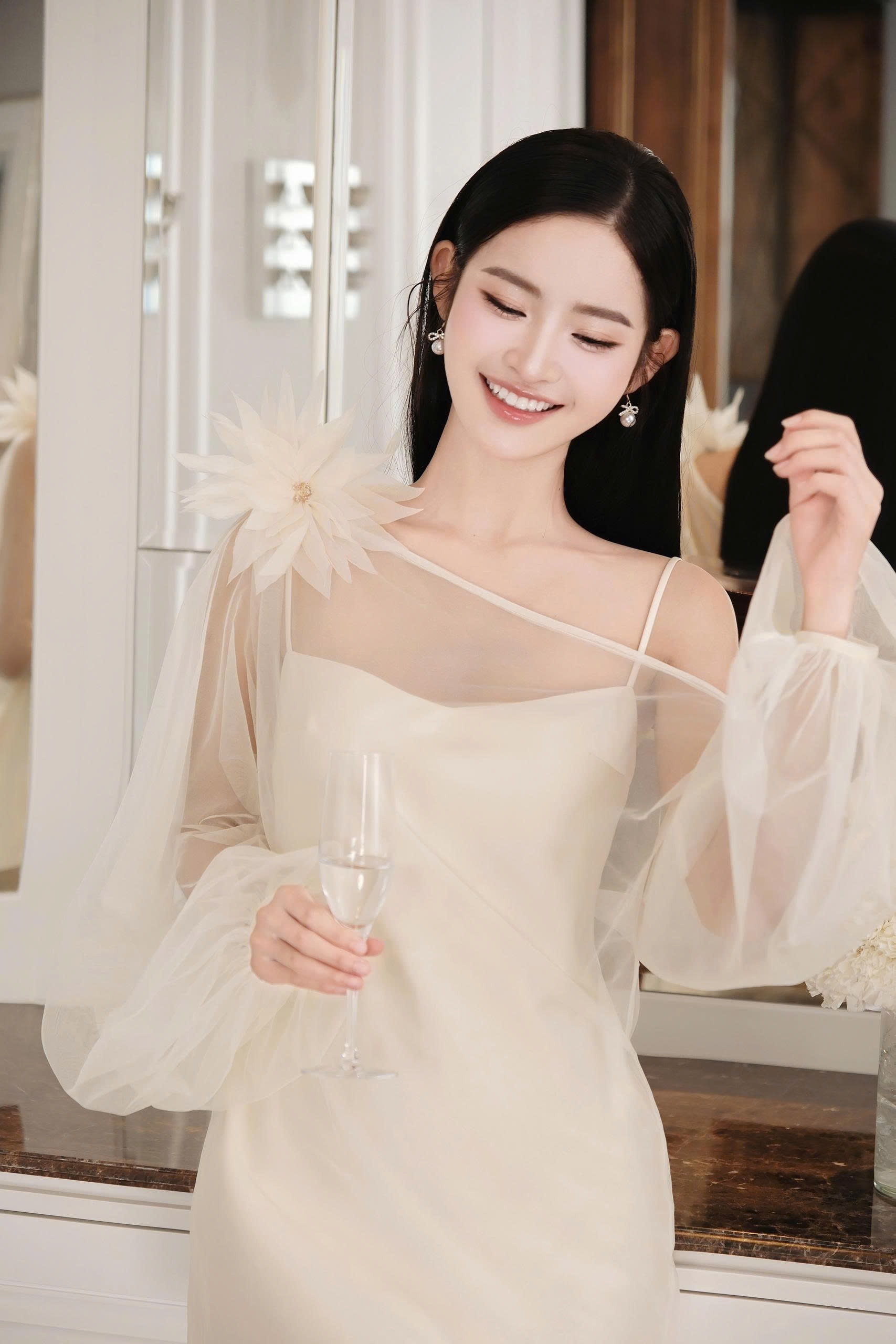 Đánh giá KS283 – Set đầm lụa 2 dây phối áo choàng lệch vai hoa 3D | Khiết