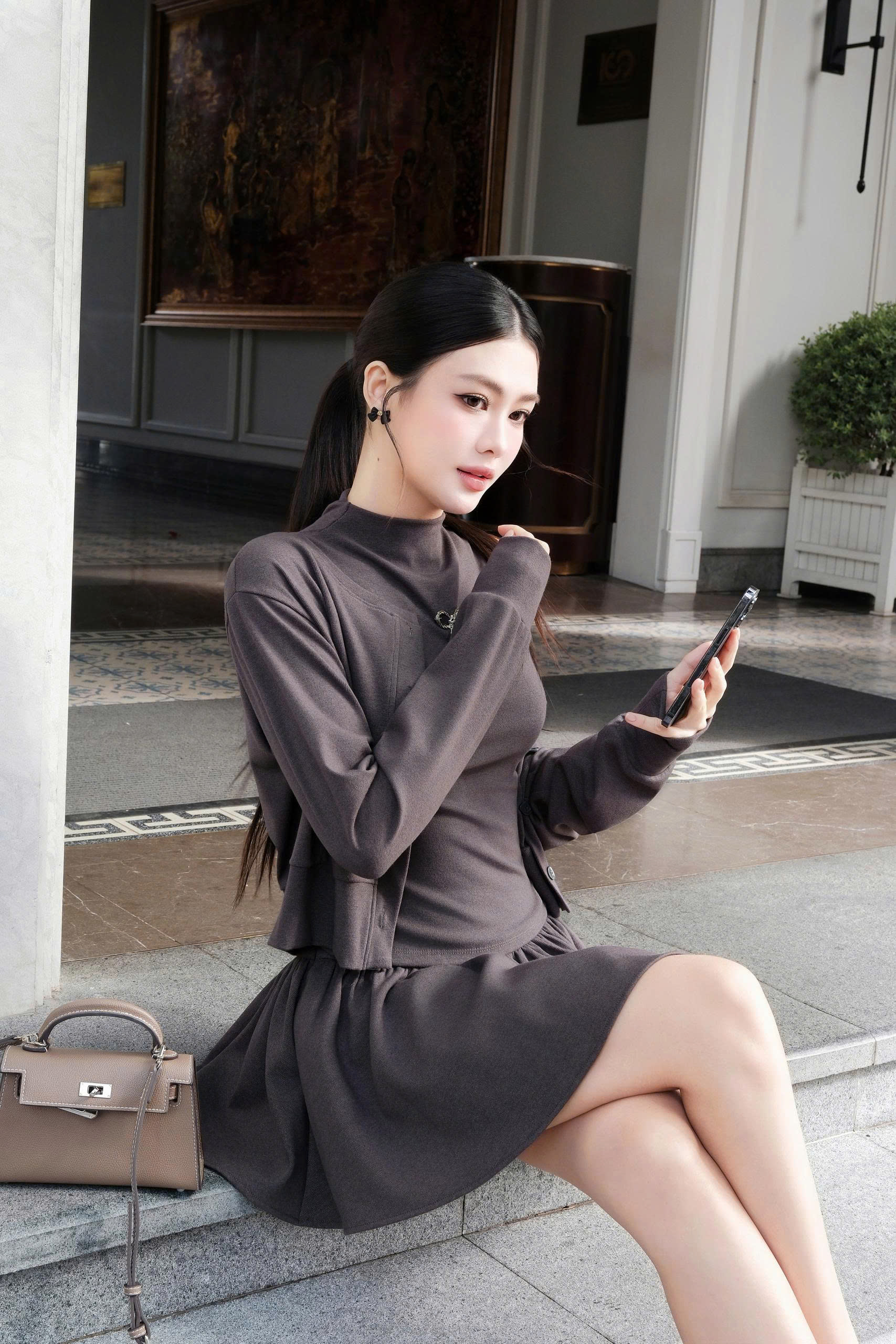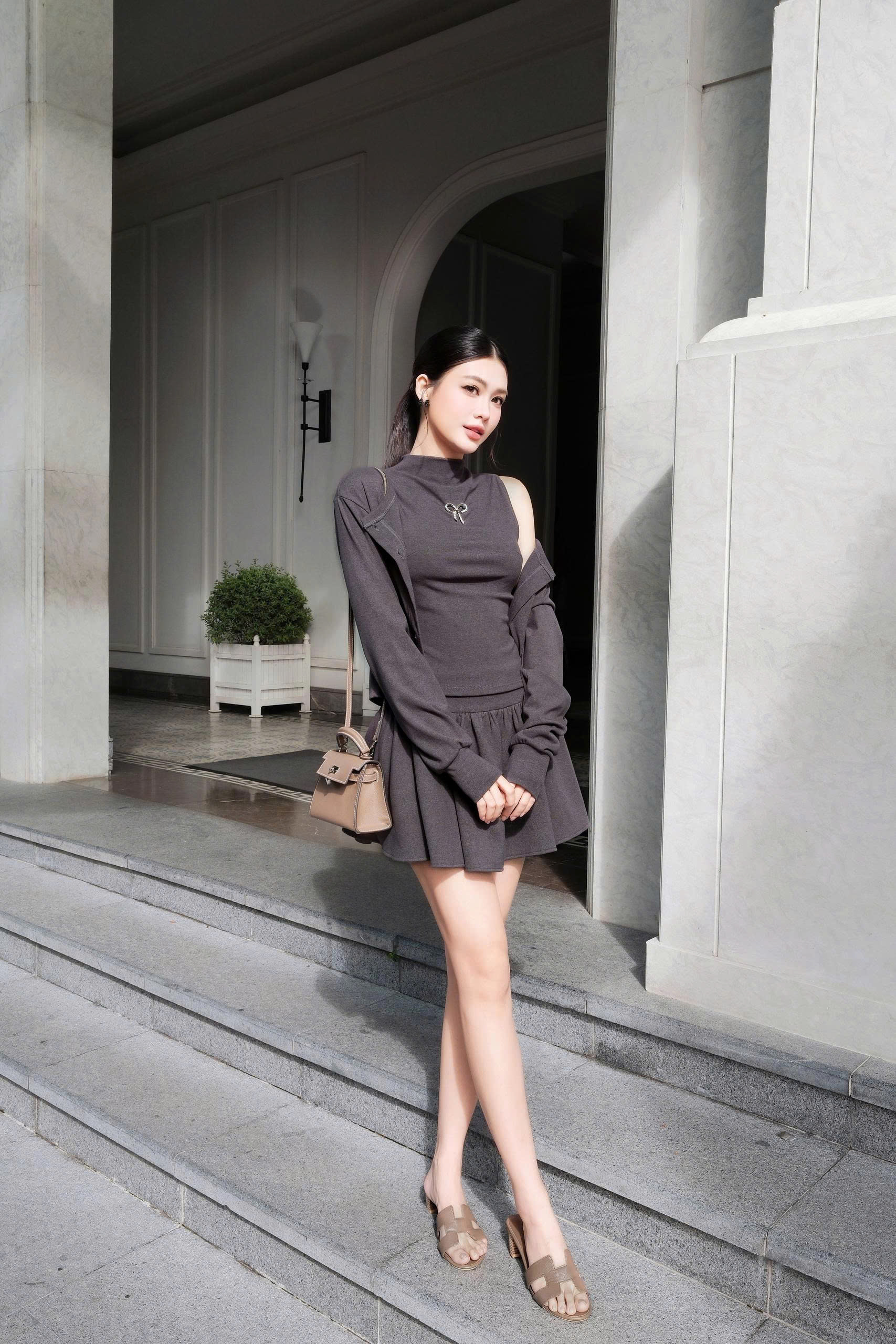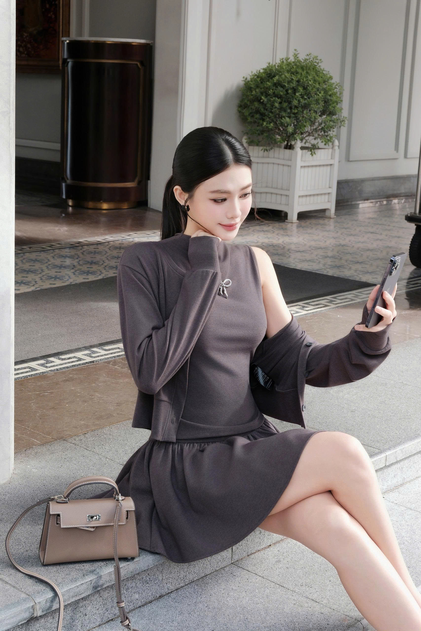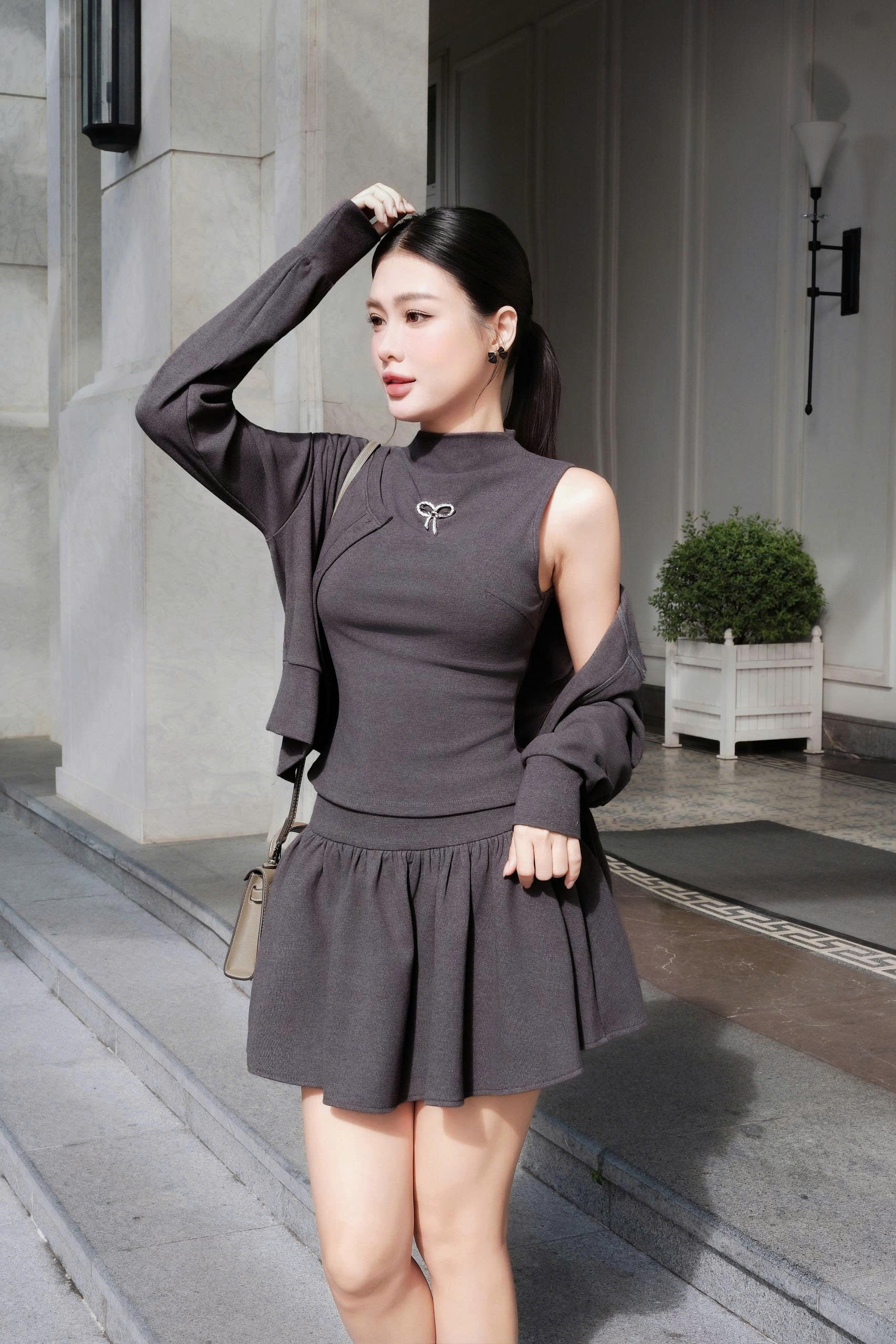 Với gam màu xám thời thượng, set đồ mang đến sự hiện đại, sang trọng và cực dễ phối cùng phụ kiện. Nàng có thể diện đi dạo phố, cafe, shopping hay hẹn hò đều phù hợp.