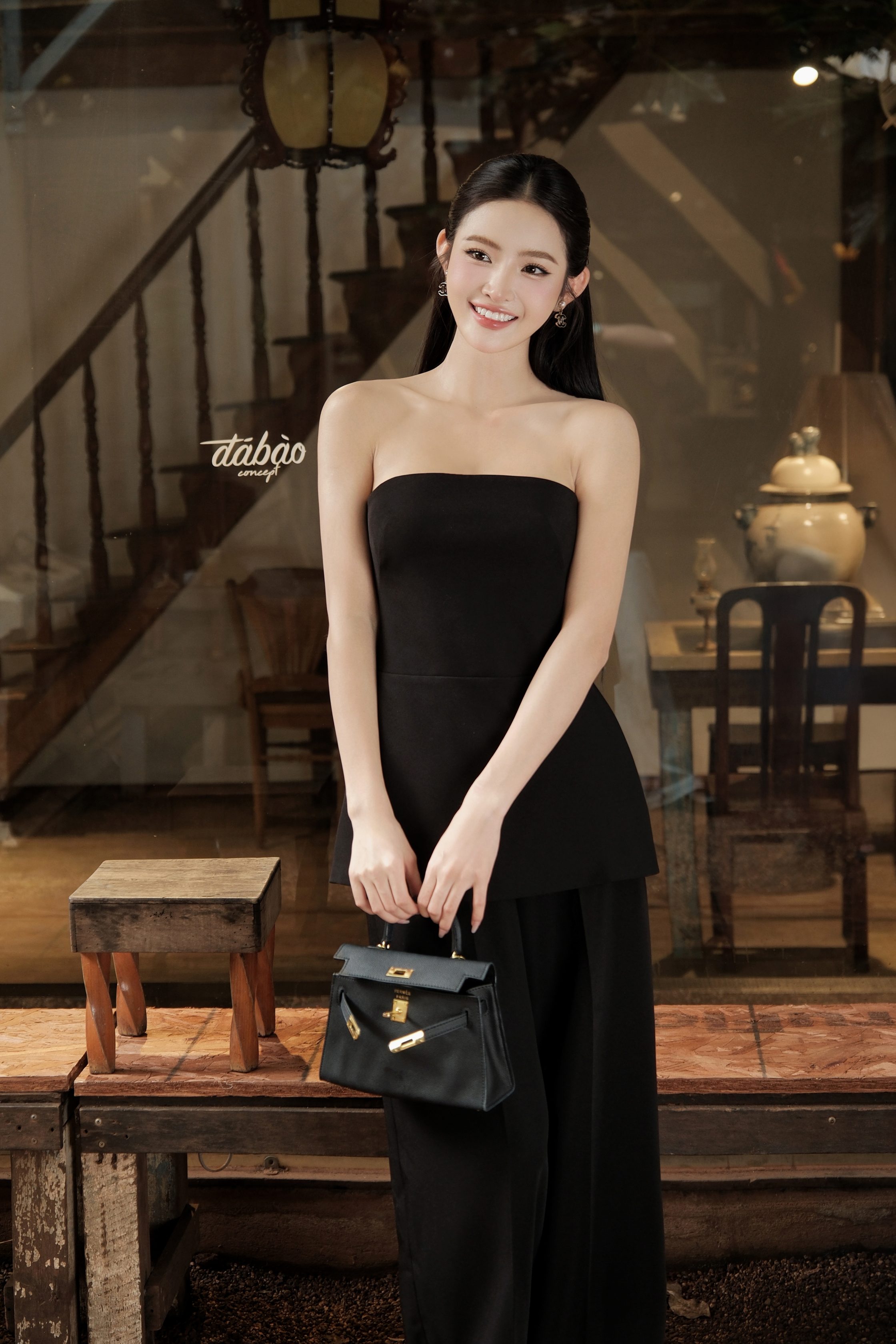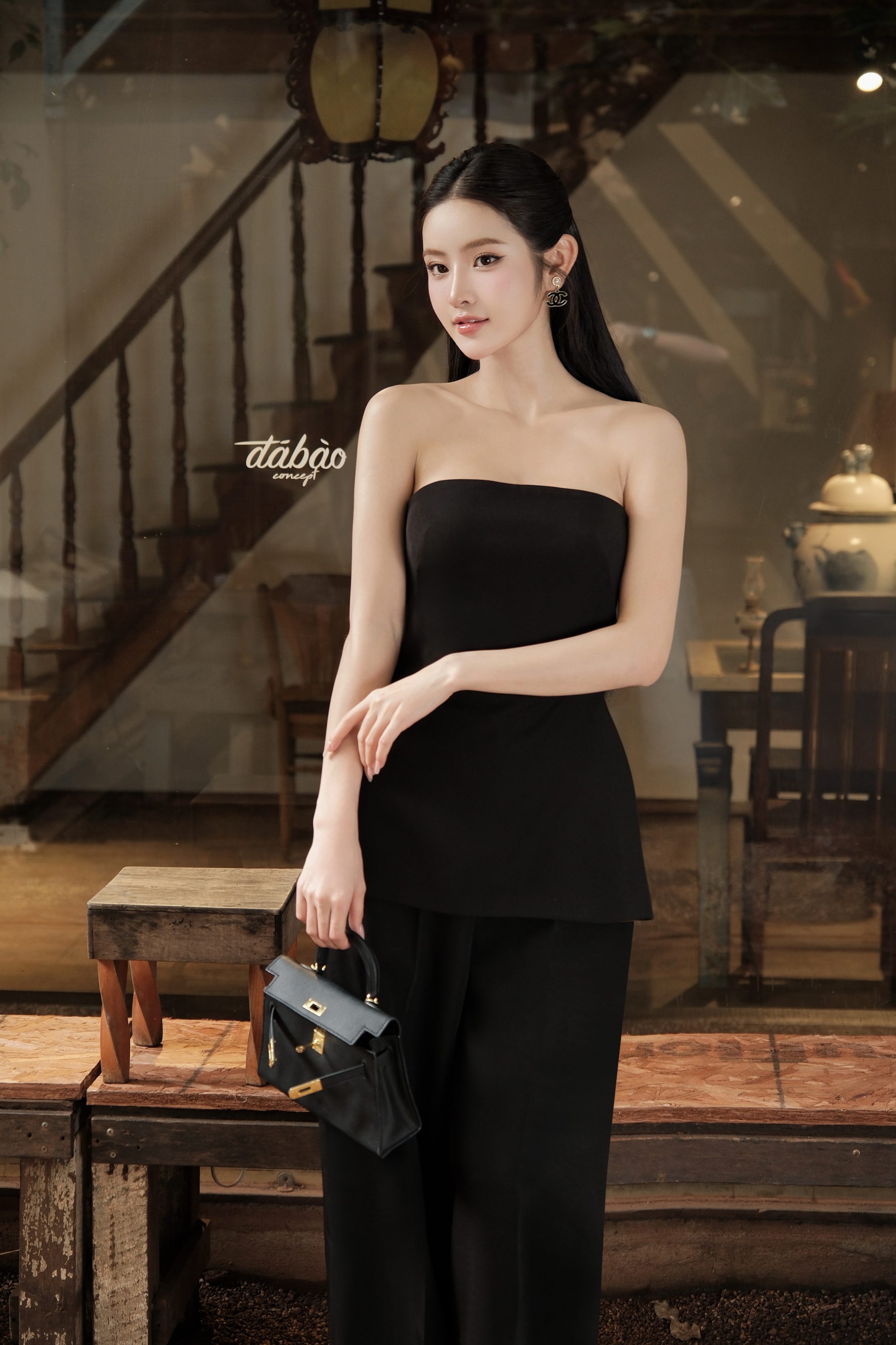 Phần quần dáng ống suông bản rộng, cạp cao ôm nhẹ phần hông rồi thả rũ tự nhiên, tạo hiệu ứng kéo dài đôi chân thon thả. Đường ly dọc phía trước tăng vẻ chỉn chu, thanh lịch – hoàn hảo cho những cô nàng yêu phong cách tối giản nhưng vẫn muốn nổi bật tinh tế.