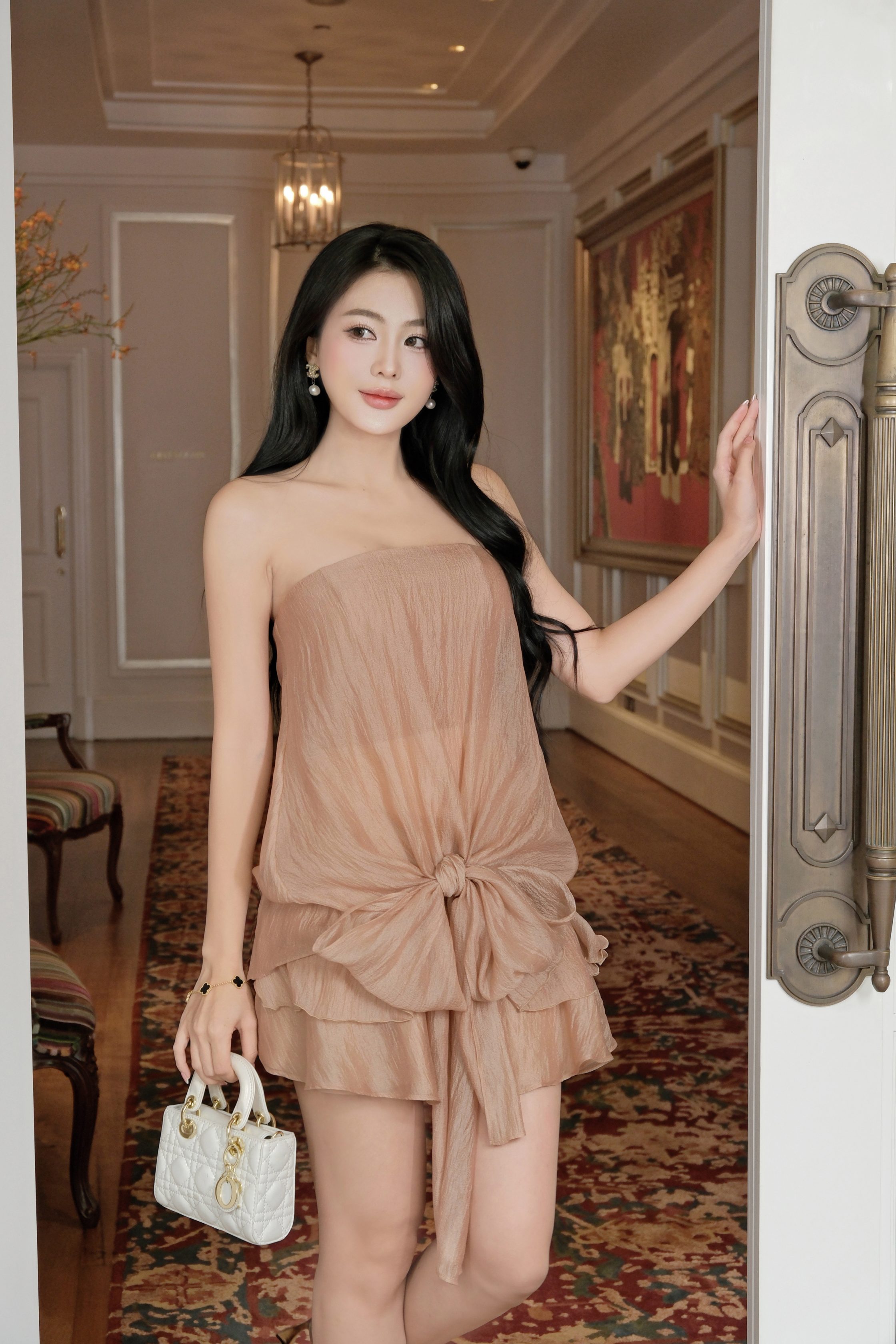 Đánh giá KS397 – Set váy ngắn quây buộc nơ chất tơ giấy bay bổng, dáng tầng bèo bồng bềnh, nữ tính