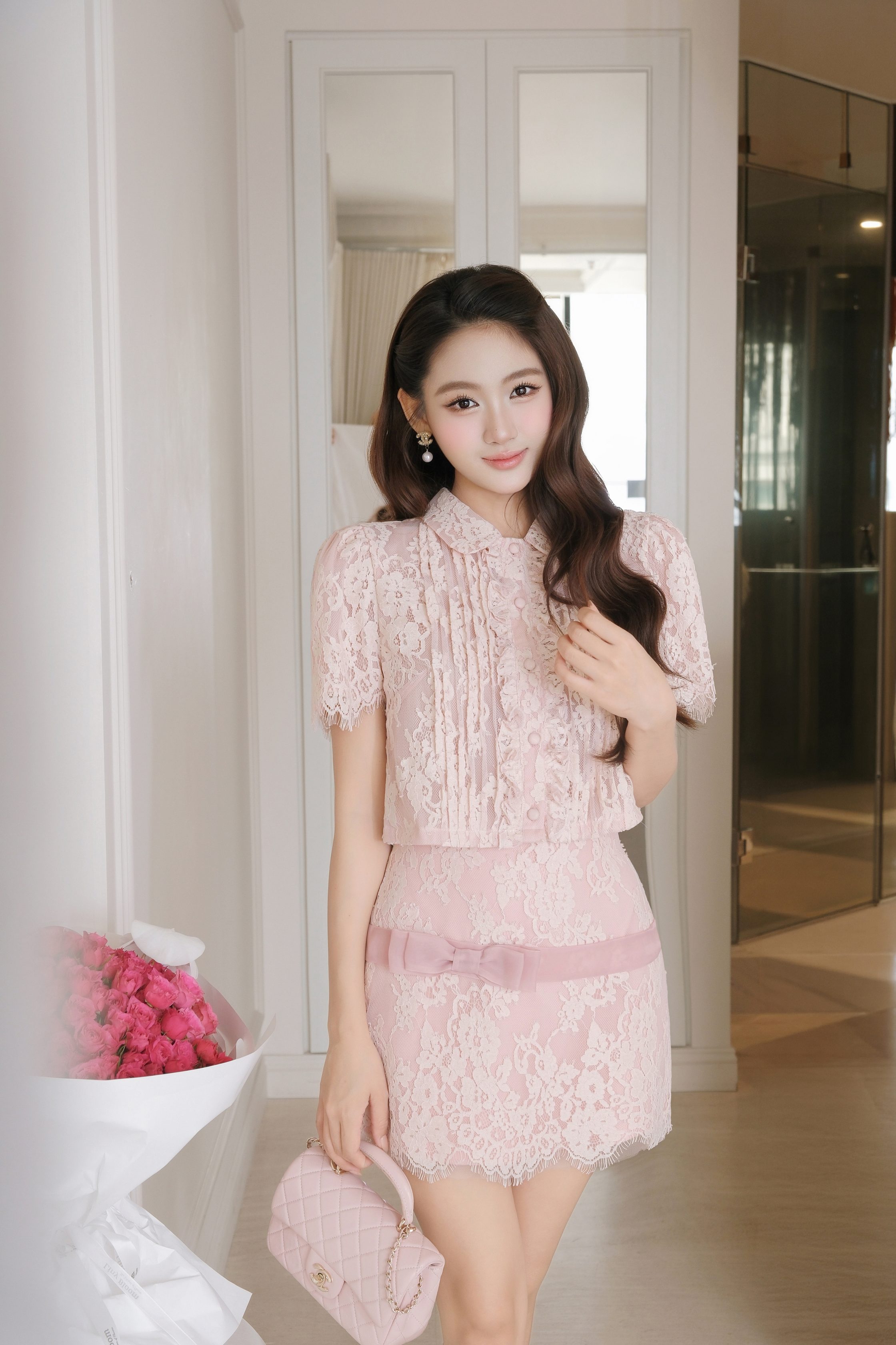 Đánh giá KS564 – Set váy ngắn ren mi hồng pastel thanh lịch ngọt ngào | Khiết