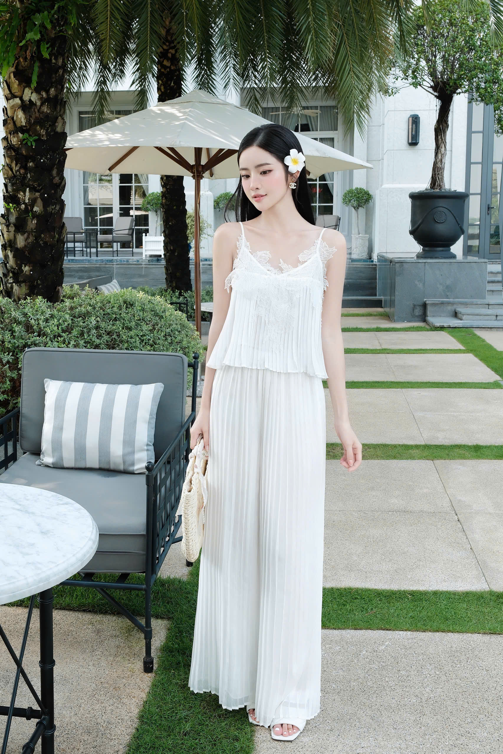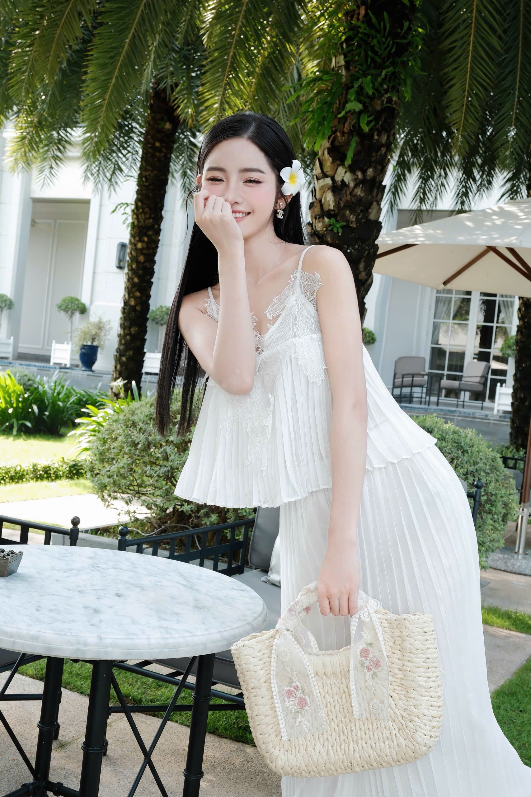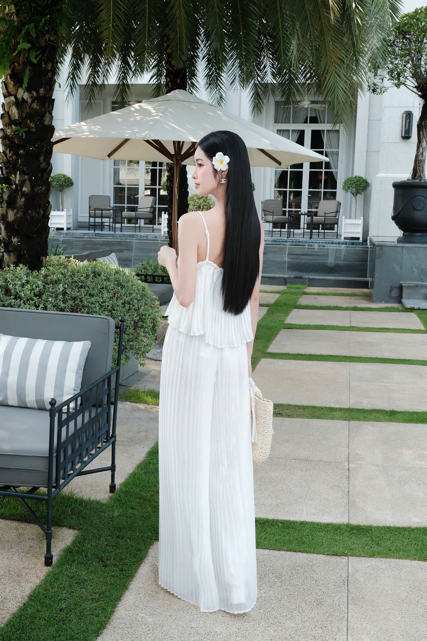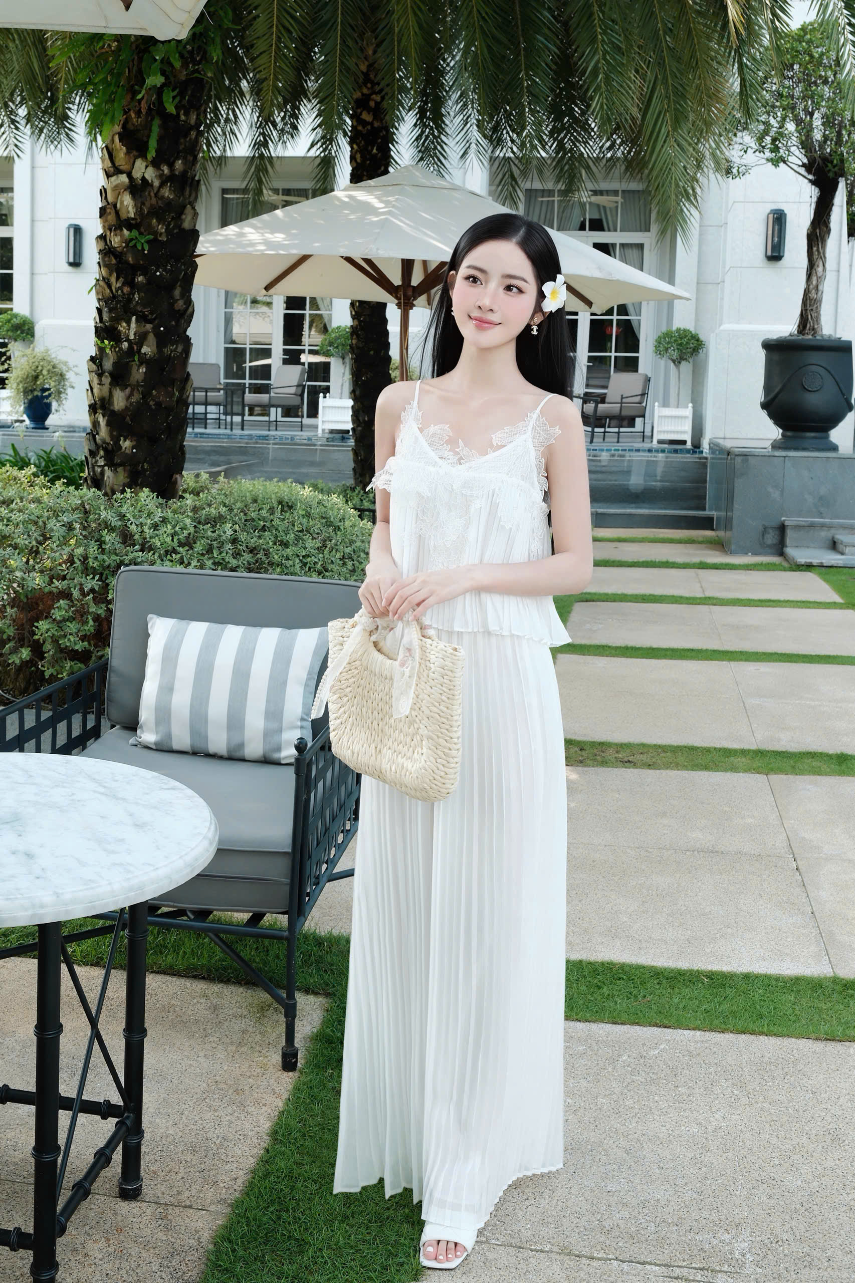 Outfit mang tone trắng trang nhã, cực kỳ lý tưởng cho những chuyến du lịch biển, dạo chơi ngày nắng, hoặc đơn giản là mặc hàng ngày để luôn toát lên vẻ thanh thoát, nhẹ nhàng.