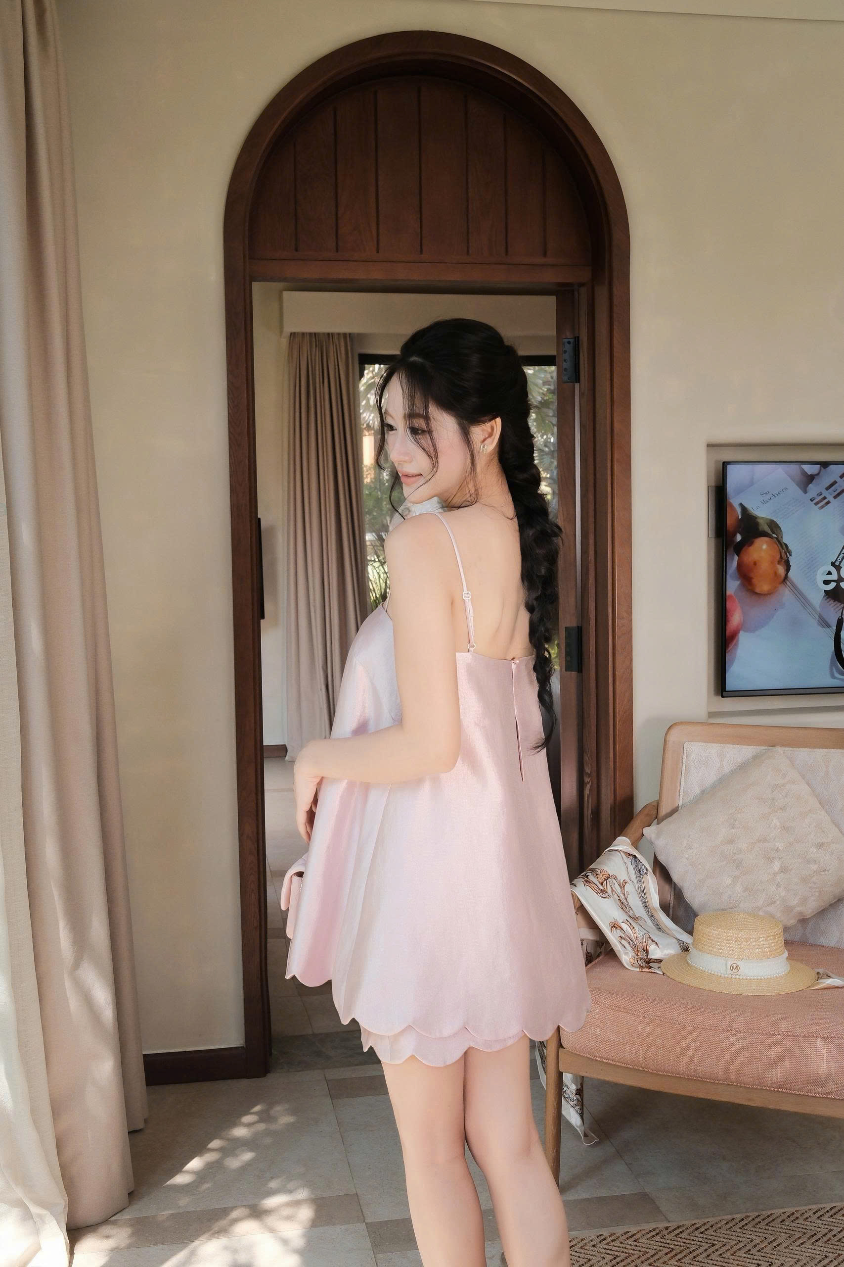 Đánh giá Set Đầm Ngắn KS600A 2 Dây Tafta Ánh Hồng Kèm Quần Nữ Tính