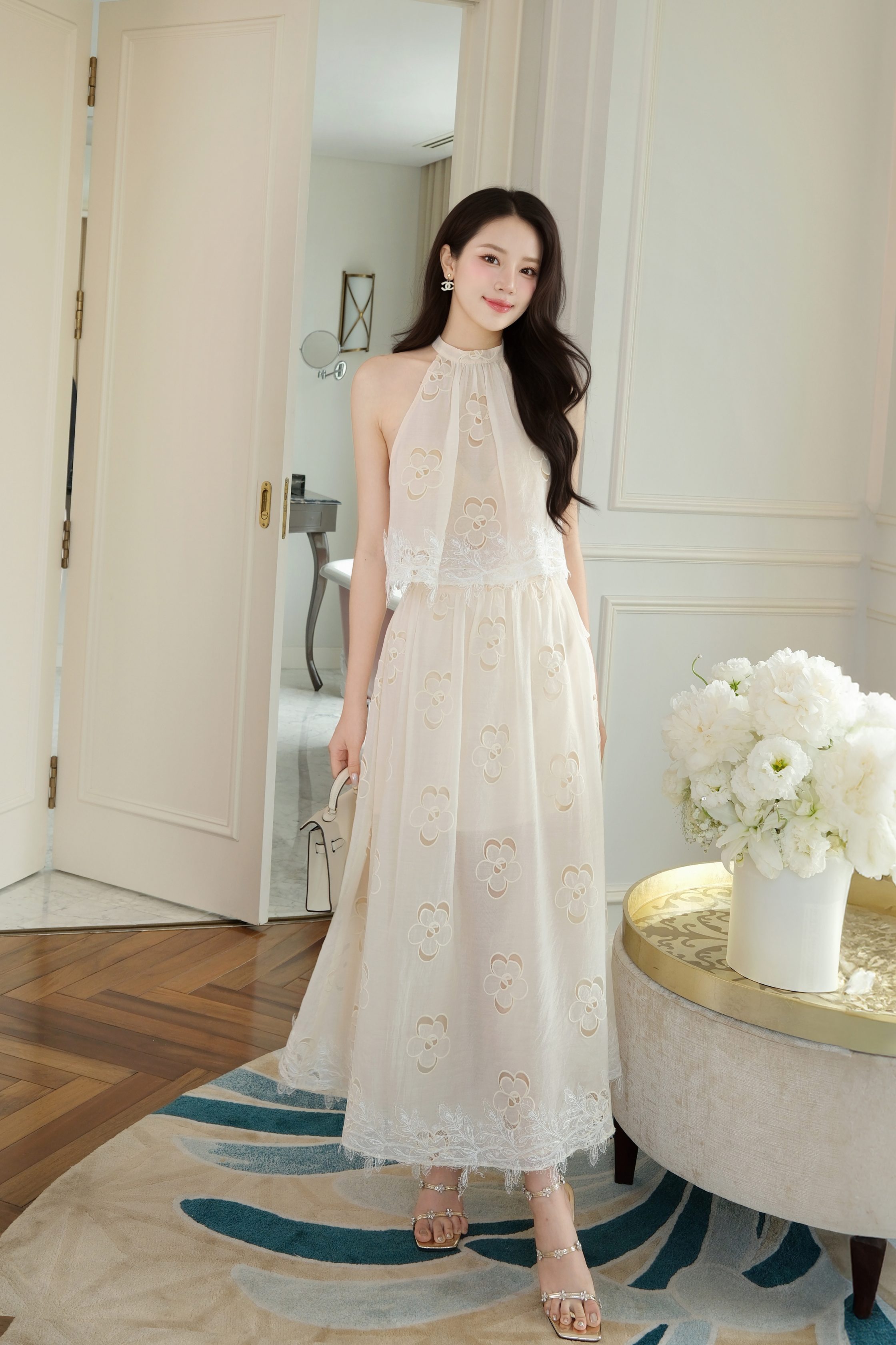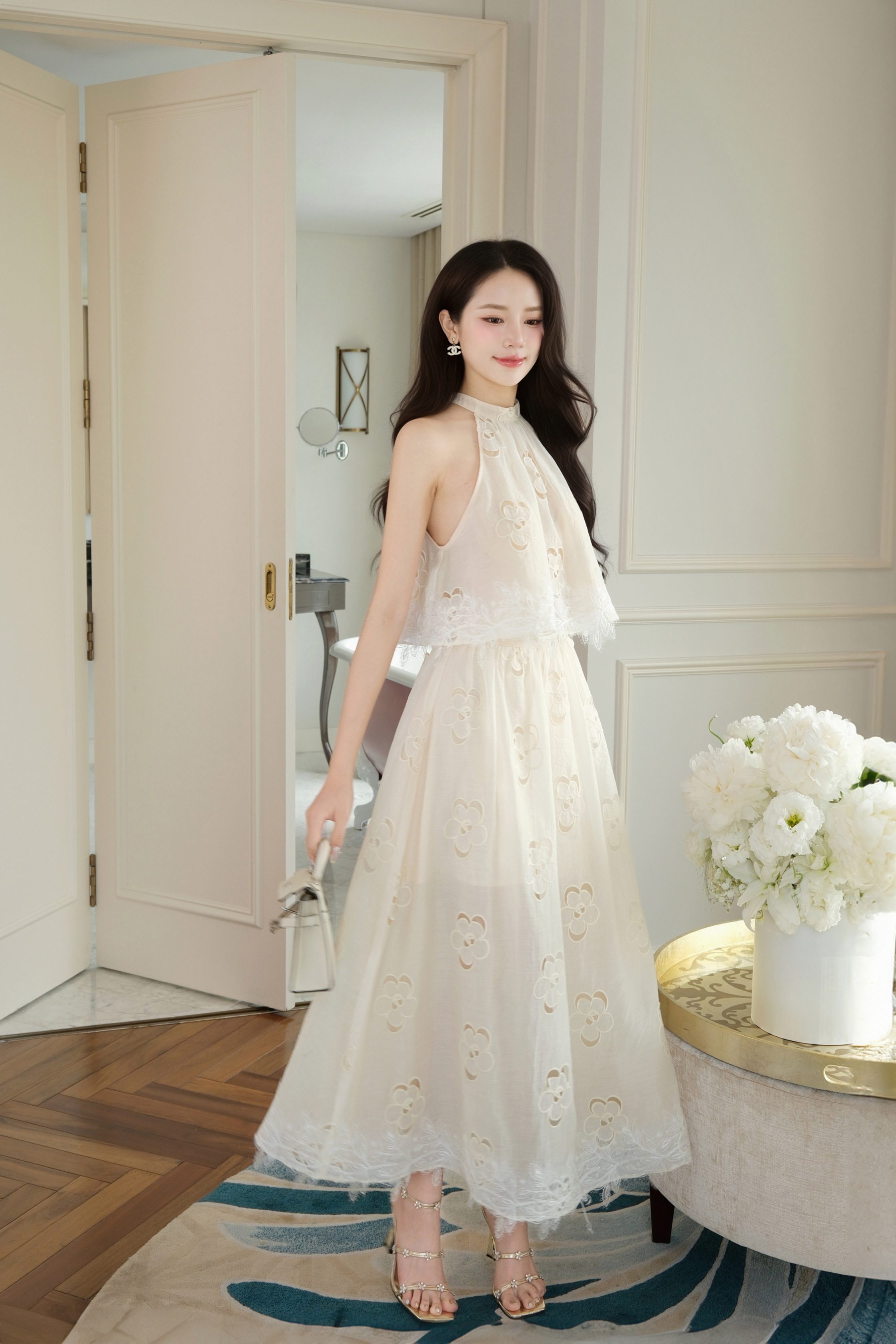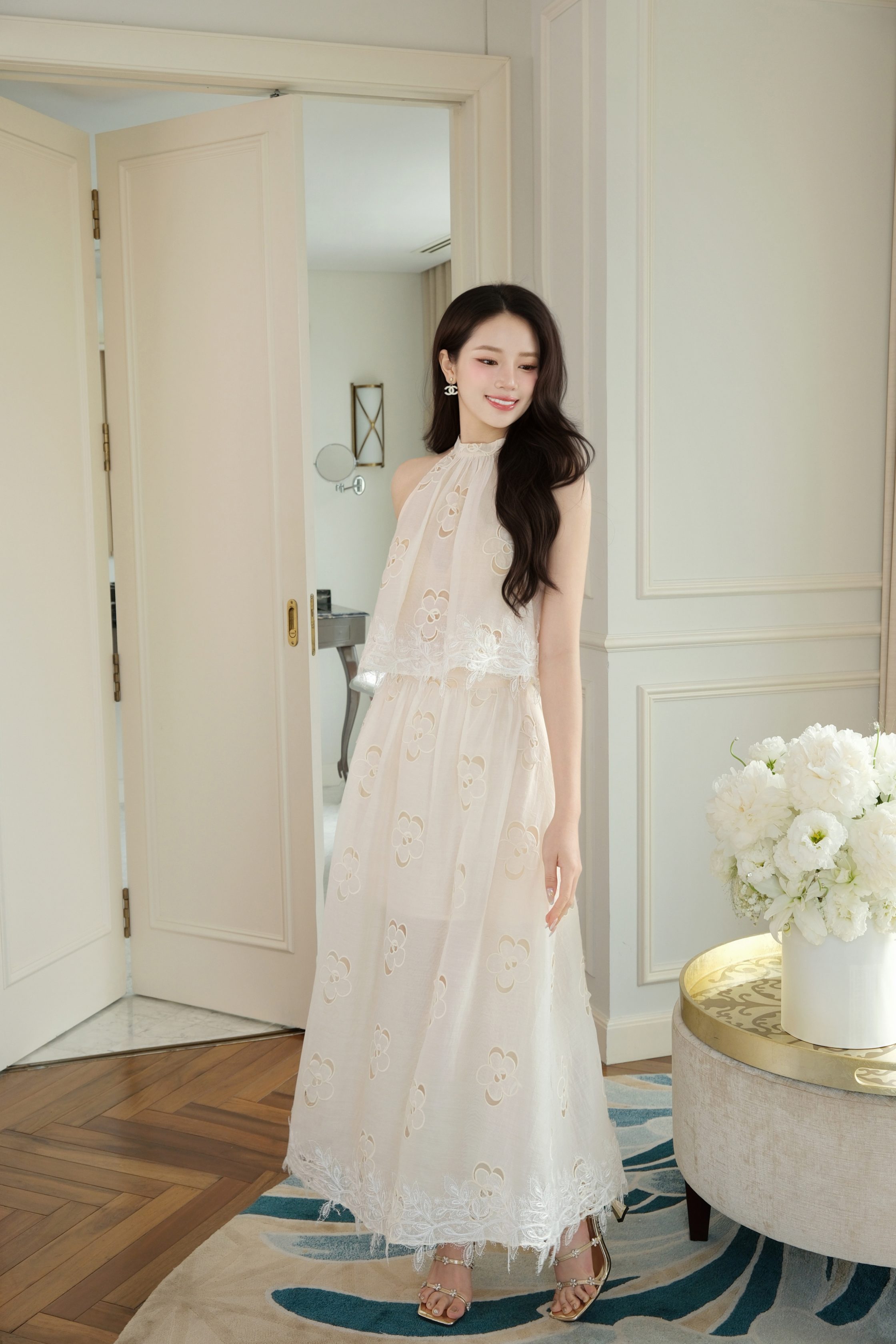 Đánh giá Set Váy Dài KS257 | Áo Cổ Yếm & Chân Váy Maxi Tơ Thêu – Dịu Dàng & Tinh Tế