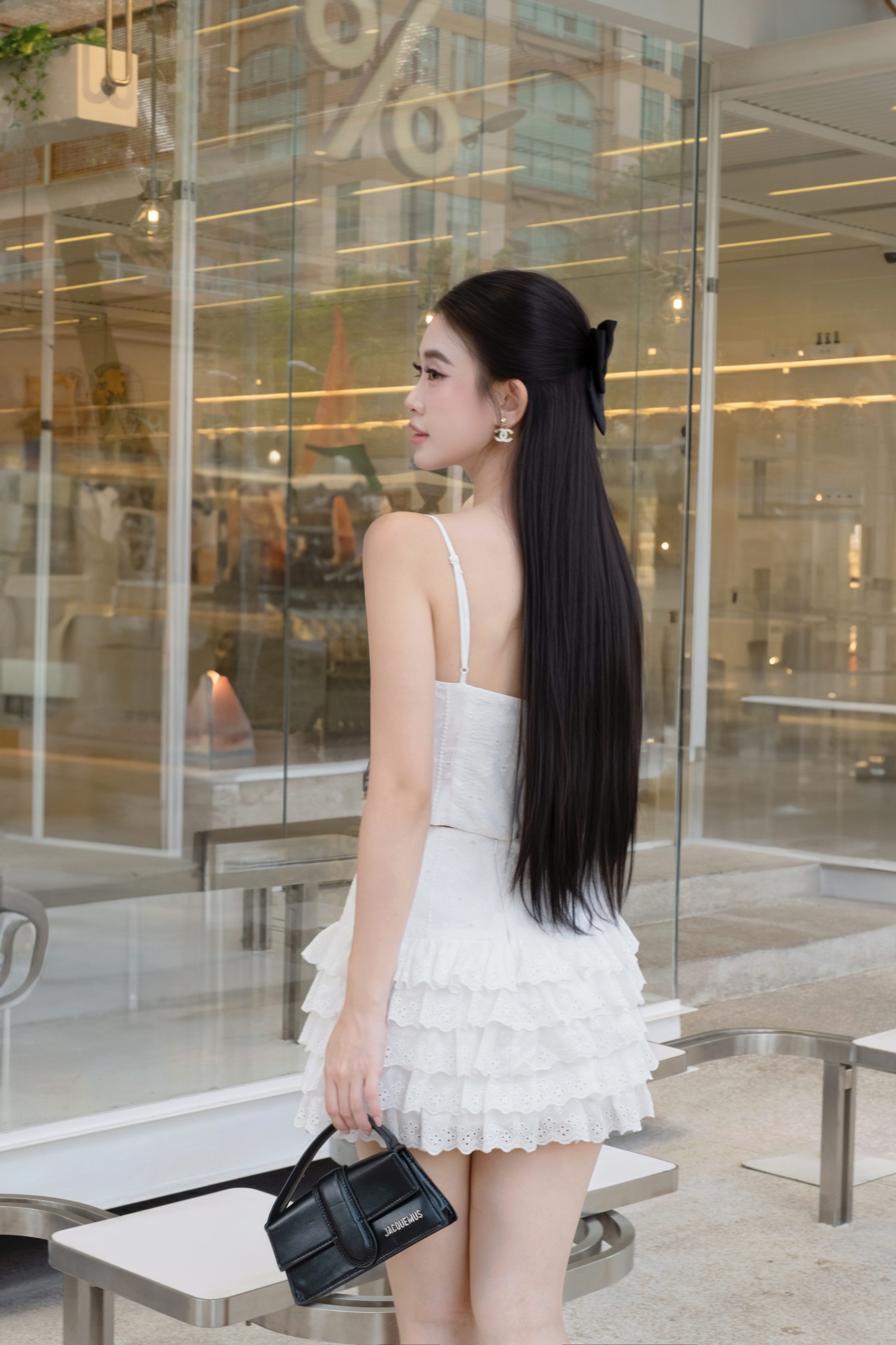 Chân váy xếp tầng bèo, tùng váy ngắn trẻ trung – tạo hiệu ứng bồng bềnh, năng động và tôn chân dài